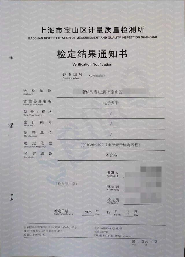 2025年12月3日,市民高女士来到宝杨派出所报案,称自己出售金手镯时疑似遭遇缺斤少两。据高女士描述,她前几日前往一家金铺出售金手镯,店主夏某用店内电子秤称得重量为22.44克,双方最终以每克940元的价格成交。然而,高女士回家后经丈夫提醒,找出当年购买发票核对,发现手镯实际净重应为28.29克。两者相差5.85克,损失金额高达5499元。在与商家协商未果后,高女士选择报警。