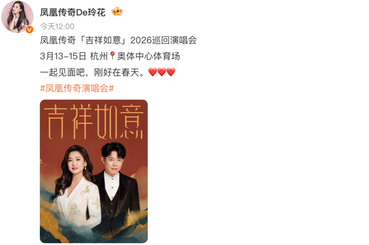 今天中午,凤凰传奇的杭州演唱会,宣布定档了。