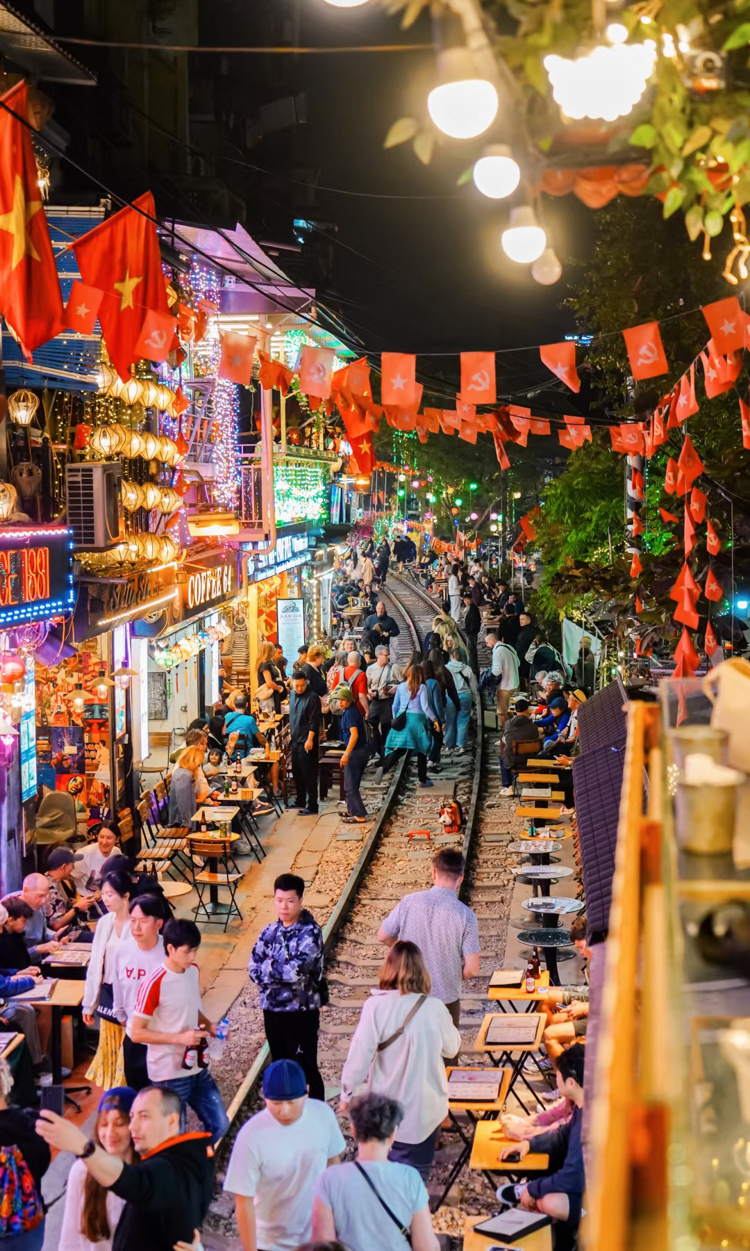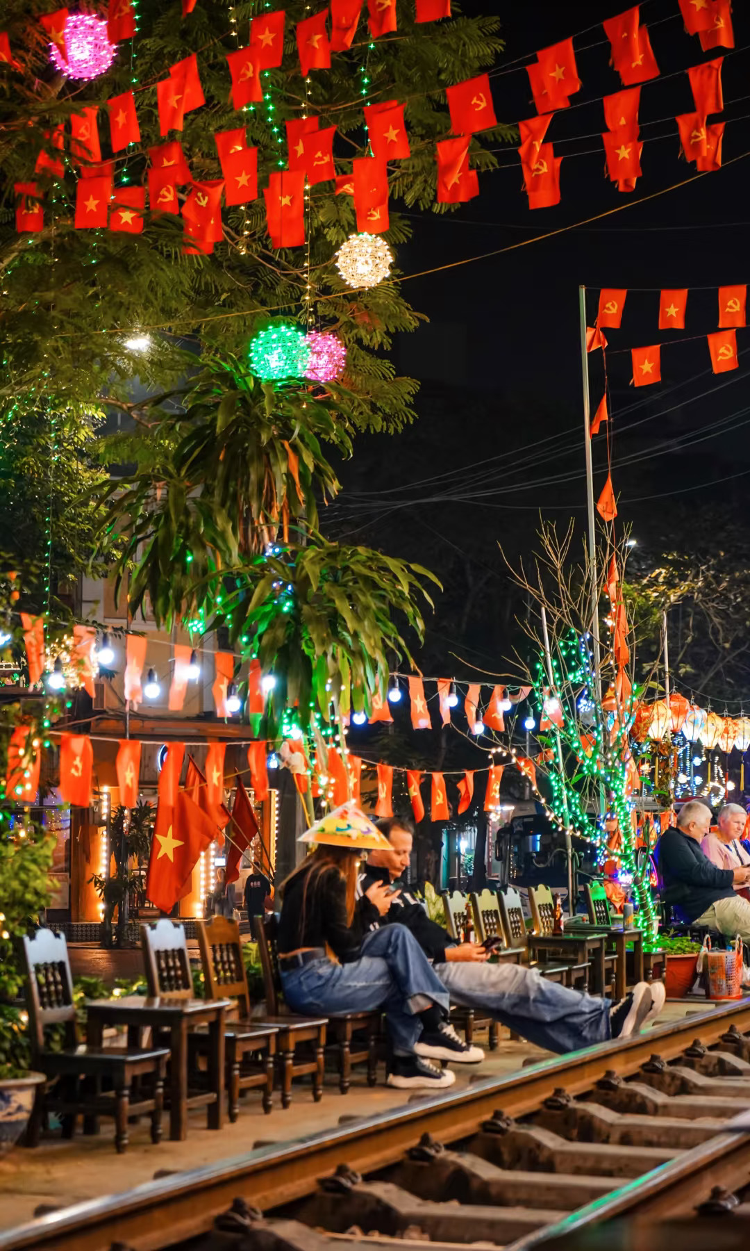 在河内最为期待的就是火车街✌️1902年由法国殖民政府修建,至今已有124年历史。夜间氛围更浓,但是车头白天拍更好,这车头大灯强得可怕~ 散射特别厉害(俺不知道如何才能调成星芒状)。灰霾的空气质量+强光影响,实在不算太美观