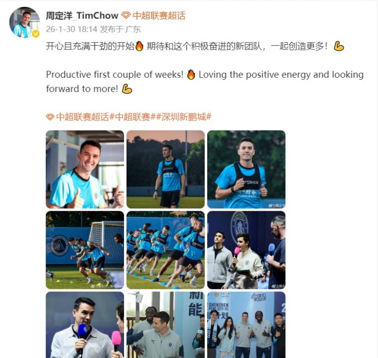 周定洋在个人微博中写道:开心且充满干劲的开始期待和这个积极奋进的新团队,一起创造更多!