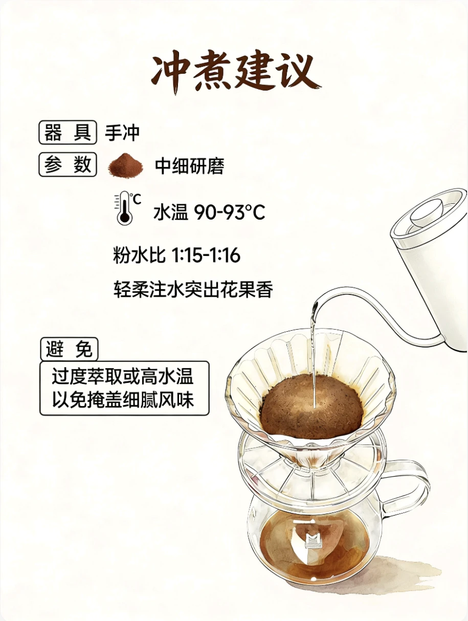 ▫️产地核心:巴拿马瑰夏山&埃塞俄比亚原生种 高海拔带来的干净酸度,是它的灵魂密码 ▫️风味关键词:柑橘调/茉莉香/蜂蜜甜感/尾韵坚果香 不同处理法会解锁不一样的味觉层次 ▫️冲泡小tips:水温90-92℃,细粉慢冲 突出花香与果酸的平衡感
