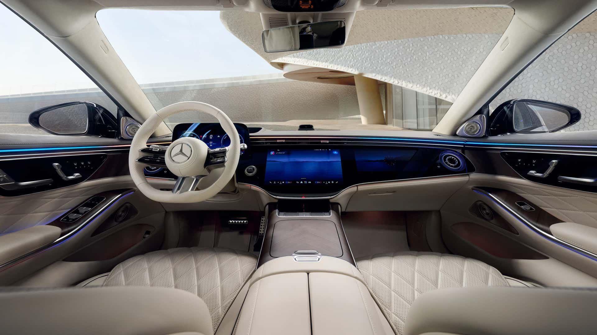 10年后,W223中期改款,大灯内藏三叉星辉,有222后期款三道杠类似的辨识度。