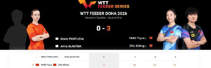 三对国乒组合晋级女双四强 WTT支线赛多哈站女双,杨屹韵/朱思冰、韩菲儿/范姝涵