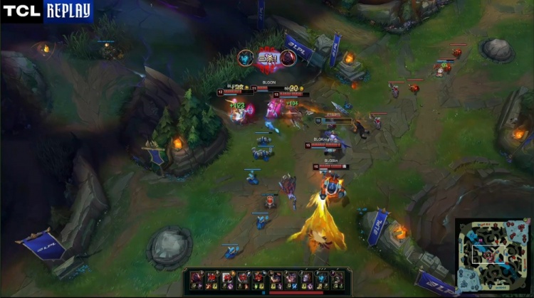 [7:12]BLG上路三包一将369赛恩堵在回廊,Xun赵信拿到人头,随后naiyou皇子来上先杀Xun再将Bin哥堵在回廊拿到双杀,TES打出1换2。