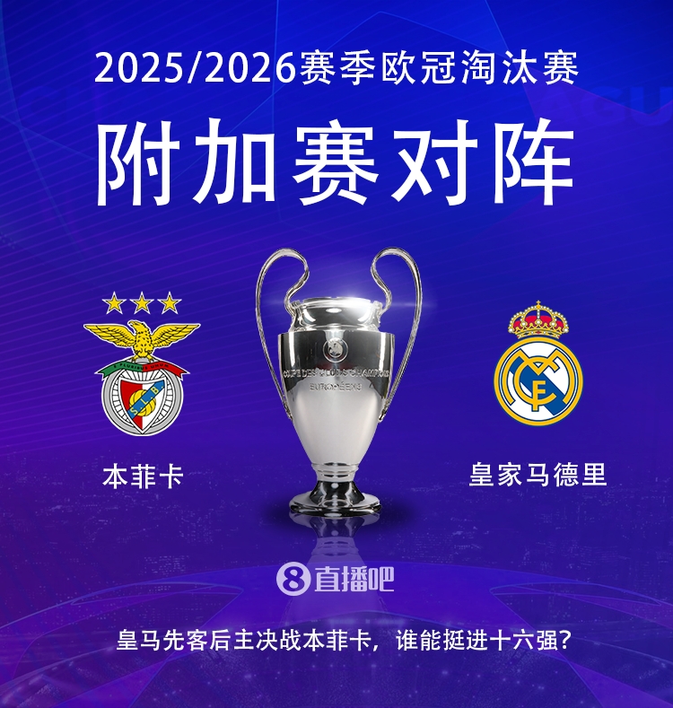 直播吧01月30日讯2025/26赛季欧冠淘汰赛阶段附加赛抽签结果今日出炉,皇马vs本菲卡,穆帅重返伯纳乌,皇马先客后主争夺16强名额。而皇马也正是在最后一轮2-4输给本菲卡后,才未能直接出线。