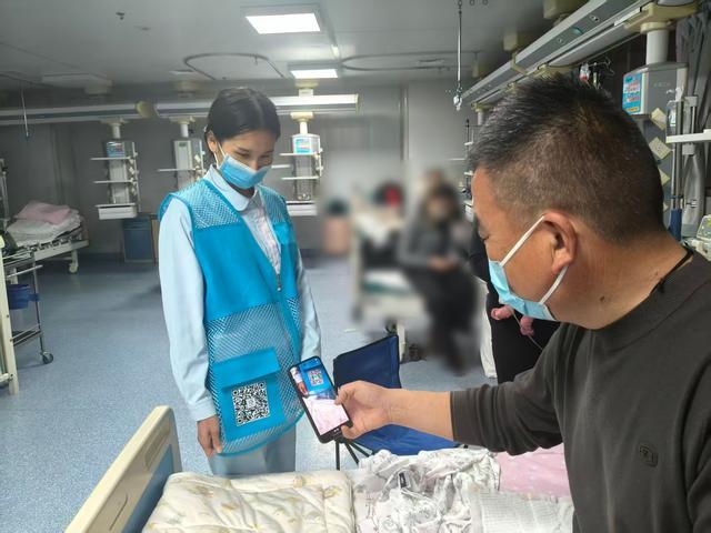 马甲两侧的衣兜,住院缴费二维码整齐陈列,将便捷服务融入每一处细节。以往,患者及家属缴费需往返护士站,如今,只需拿出手机,对准护士马甲上的二维码轻轻一扫,便能快速完成住院费用缴纳,无需排队、无需奔波,让缴费流程“少跑路、更省心”。这枚小小的二维码,不仅简化了就医流程,更缓解了家属的奔波之苦,让无暇分身的他们,能轻松搞定缴费事宜,将更多精力放在陪伴患儿上,让就医体验更具温度。
