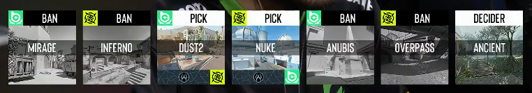 虎扑01月30日讯IEM克拉科夫第一阶段败者组,BC.Game对阵NIP地图BP: