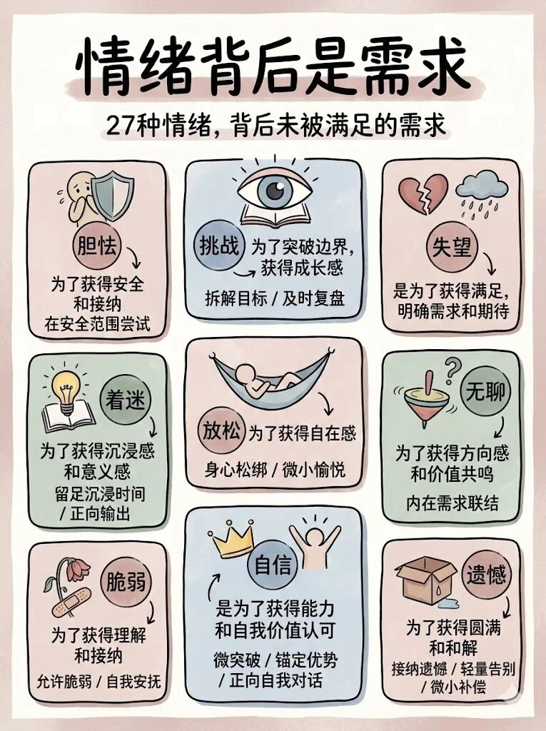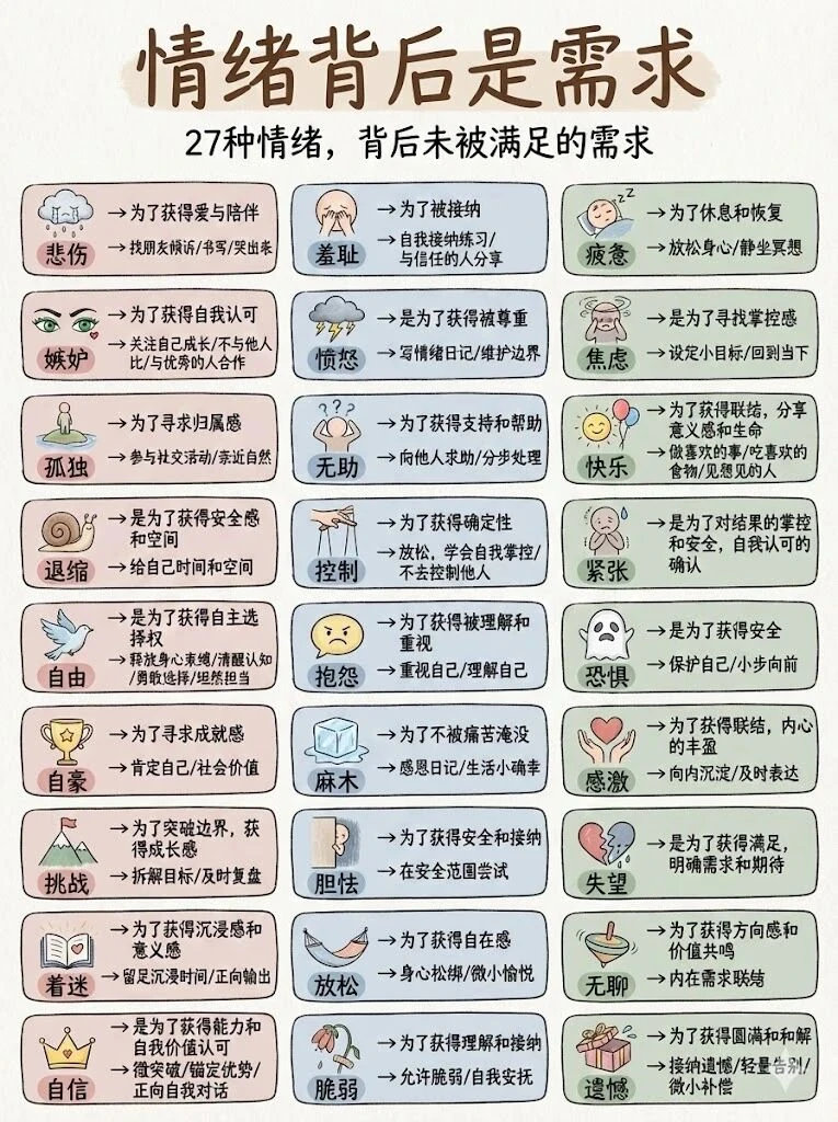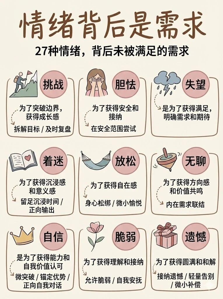 这 27 种情绪对应的需求,看完直接懂自己👇