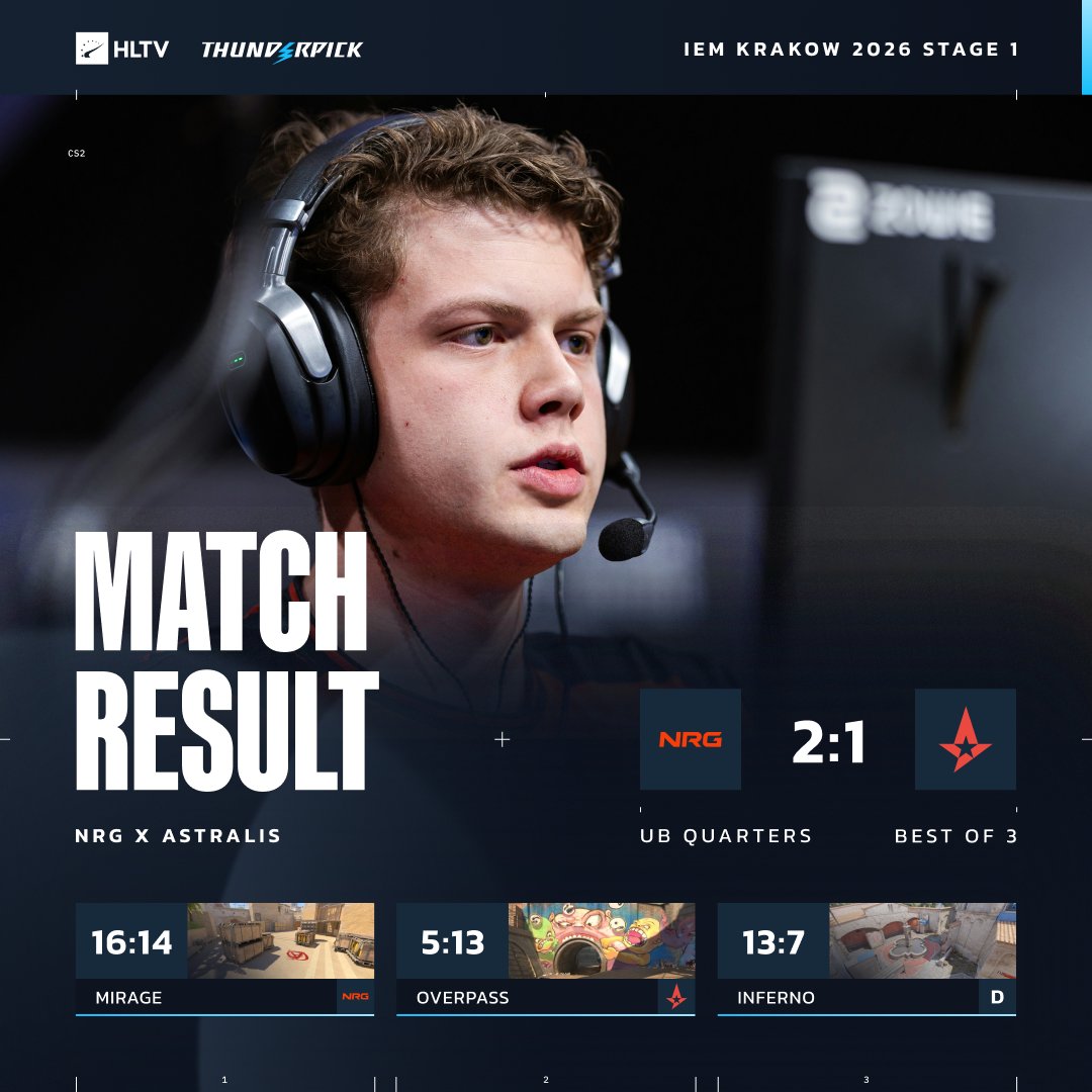 虎扑01月31日讯IEM克拉科夫站第一阶段入围赛胜者组晋级赛:NRG对阵Astralis