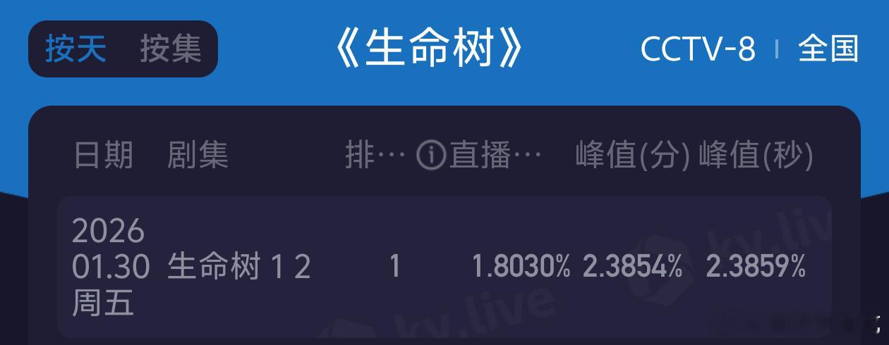 生命树首播收视率不行啊,不如近期开播的小城大事,也不如同为90🌸的利剑玫瑰,不