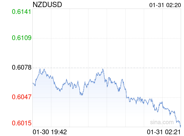 新浪外汇消息2026年01月31日,截至02时20分,外汇市场上新西兰元兑美元汇率跌破1新西兰元兑换0.6015美元。跌幅为-1.0365%