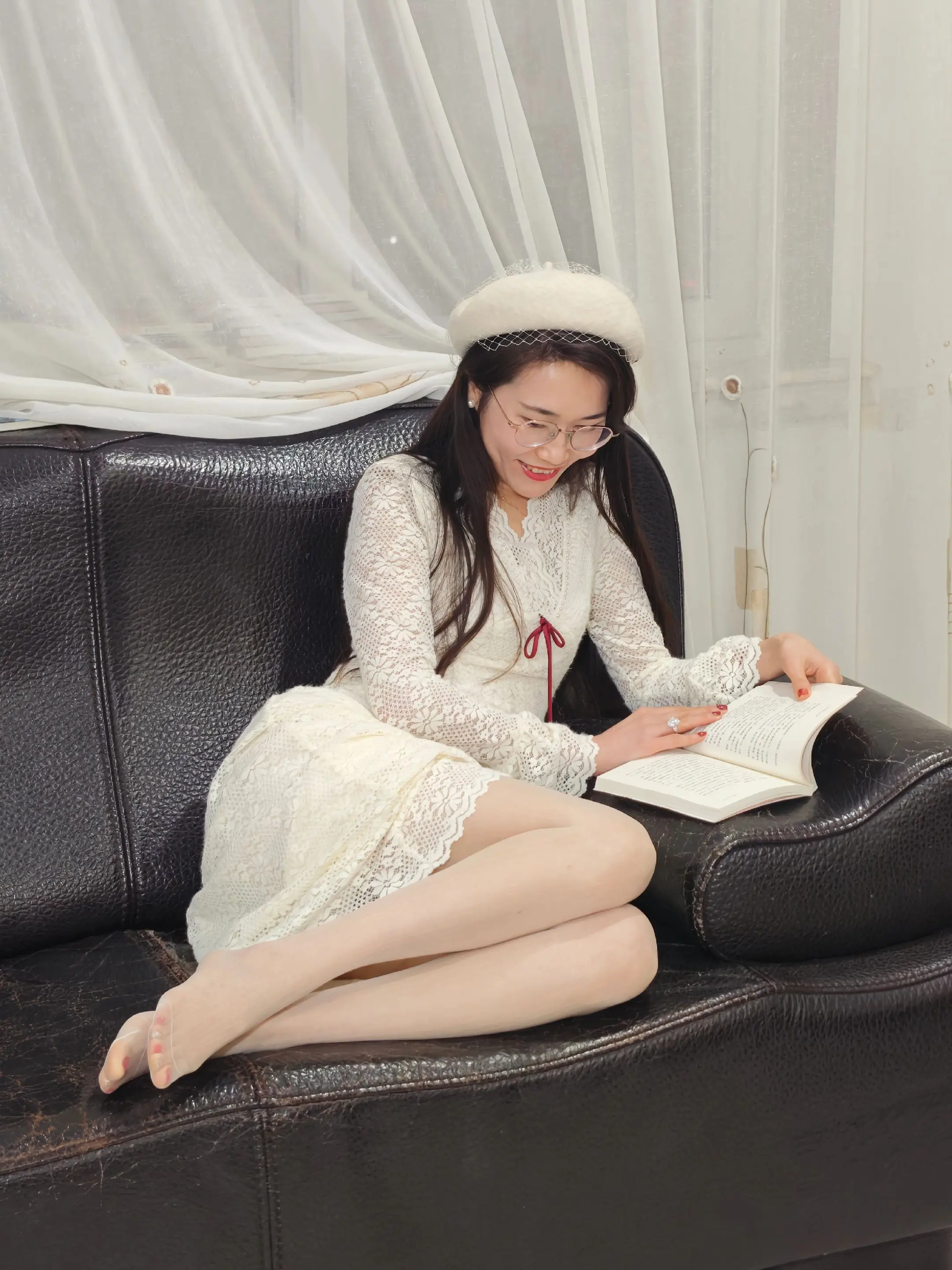白色动人心弦🤍。白月光穿搭:白色蕾丝连衣裙➕汲润【心弦】竖线打底袜~