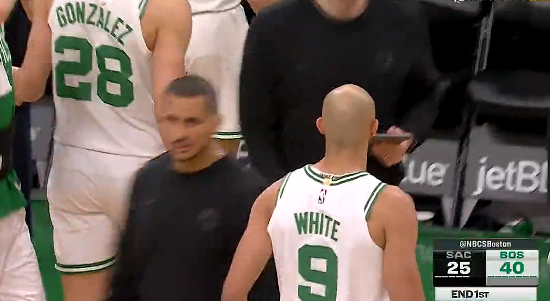 德里克-怀特抛投压哨命中,凯尔特人首节轰下40分领先国王15分。
