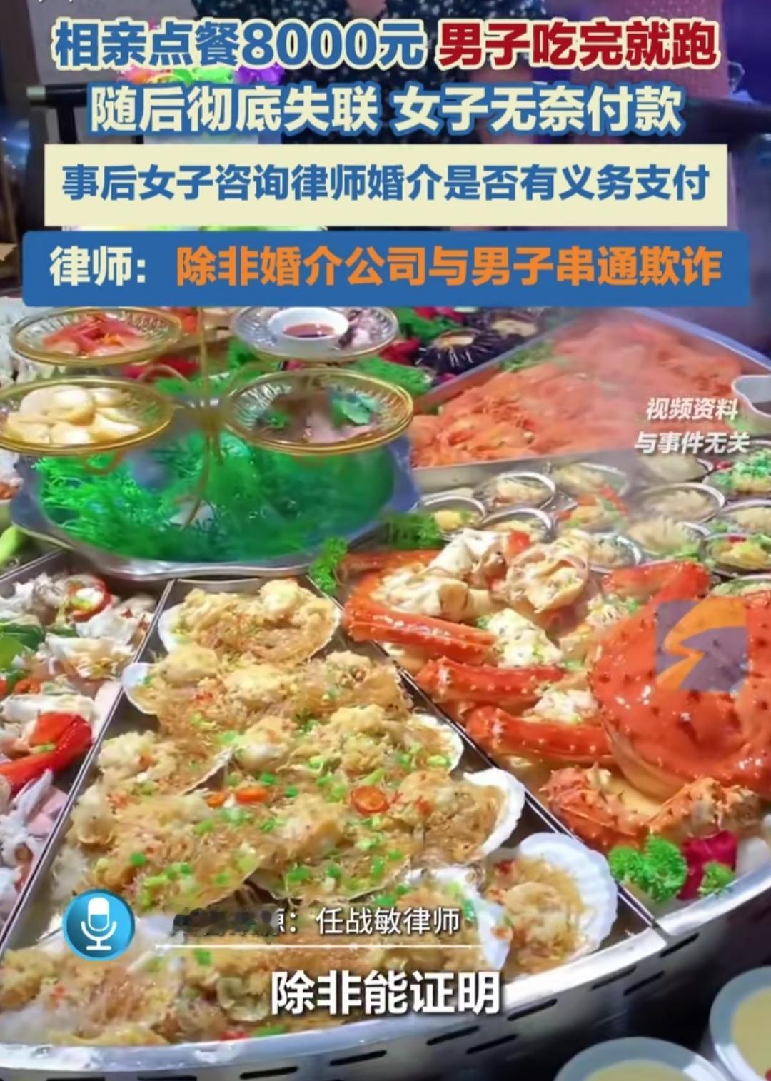 刷到个离谱的相亲饭局,真是越琢磨越让人唏嘘。经婚介介绍的两人见面吃饭,女方点餐毫不手软,专挑贵的海鲜、红酒下单,最后账单高达八千元。男方看着眼前的天价消费清单,瞬间慌了神,压根没敢当场提出异议。 谁也没料到,男方竟然借着去厕所的由头直接溜了,留下女方独自面对这八千块的账单。这事一出,大家议论纷纷,有人说男方没担当,遇事只会逃避;也有人觉得女方点餐不掂量,明显没考虑过对方的消费能力。 更让人纠结的是婚介的责任边界,不少人质疑婚介只负责牵线搭桥,却没提前核实双方消费观念是否匹配。相亲本是奔着真诚交友去的,可这场饭局,既丢了体面,又伤了人心,实在得不偿失。