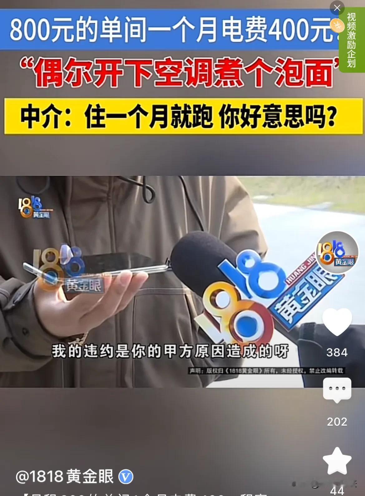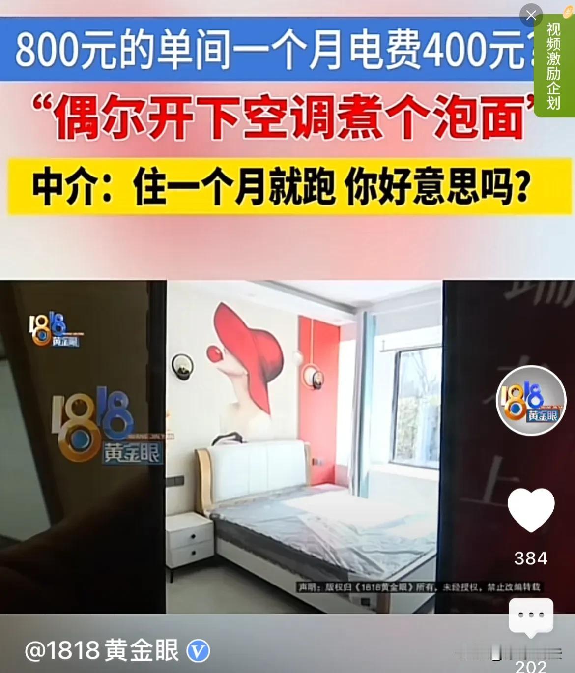 浙江嘉兴,男子在公司附近租了一个单间,每个月800元。中介拍胸脯保证,可以先短租两三个月,满意的话再长租。可男子搬进去没多久,便发现电表跑的很快,一个月的时间都不到就是使用了400元的电费。男子想要退租,可房东却说其他租客没遇到过这种情况,怀疑是男子使用了大功率电器。男子又找到中介,中介却理直气壮:才住了一个月就跑,好意思吗? 在浙江嘉兴上班的程先生为了能方便上下班,准备在公司附近租一个短期房,作为过渡。 为了能挑选一套称心如意而且价格便宜的房子,程先生通过短视频平台找到了一位当地比较有名的房屋中介,中介给程先生介绍了一个单间。 这个单间属于一个合租房,这里的租客大部分都是附近公司上班的打工族。租客的情况比较复杂,不过价格便宜,一个月仅需要800块钱。 程先生思考一番后决定租下这套房子,不过他也把自己的想法如实告诉给了中介,中介拍着胸脯保证,可以先租两三个月,如果满意的话再承租,不满意的话可以退。 双方于是签订了租房合同,合同约定先交1000块钱的押金,租金每月交一次,水电自理。 办理完手续之后,程先生迫不及待的入住了新房,由于房子距离公司的距离仅有3公里,上下班非常的方便,这让程先生感到非常的满意。 谁知还没高兴多久,程先生就发现一个很棘手的问题,入住了仅一个星期程先生家的电费就没了。 程先生连忙查看了出租房里的热水器空调等大功率电器,发现他们的能耗均为三级,能耗相比于一般的家用电器能耗要高一些。 一度电就要一块钱,这让初来乍到的程先生感到一阵肉疼,下意识的减少了这些电器的使用次数。本以为这样做之后电费会少一些,没想到电表依旧跑得飞快。 程先生终于意识到电表有些不对劲,于是连忙联系房东反映情况。 可房东却表示,他的租客不止程先生一个人,从来没有接到其他租客反映电表跑得快的问题。言外之意就是怀疑程先生频繁使用出租屋内的大功率电器。 程先生听完当时就火了,为了能省一点电费,他们每天只开一个多小时的空调。再加上他们偶尔也会回老家,实际在出租房居住的时间也就20天左右。哪怕电器再怎么费电,也不可能这么离谱。 可是房东根本不信,于是把问题甩给了中介,要想退房的话,直接找中介就可以。 程先生又立刻联系到了中介,可是中介对于程先生遇到的问题根本就不关心,反而质问程先生:这才住了一个月就退租,好意思吗? 而且根据合同的约定,退租可以,退押金是不可能的。 程先生被中介的话搞得哭笑不得,哪怕一分钱的押金不要,也要把自己的经历进行曝光,避免更多的人上当受骗。 对于程先生的经历,很多人表示同情,一个月就要用掉400块钱的电费确实非常的离谱,况且程先生一个月的房租才800块钱,租房子的目的本来就是方便上下班,同时也能减少一些出行成本,要是这样计算下来的话,成本不仅没有降低反而增加了。 不过也有人认为,程先生与中介已经签订了正式的租房合同,就应该按照合同上的约定履行自己的义务。 另外在法律上也有明确的规定,《民事诉讼法》第六十七条:当事人对自己提出的主张,有责任提供证据。 也就是说,程先生主张电费不正常就应该拿出相应的证据,而不是仅凭自己个人的判断。 此你怎么认为呢?关注@康康说法 多学法律少吃亏。