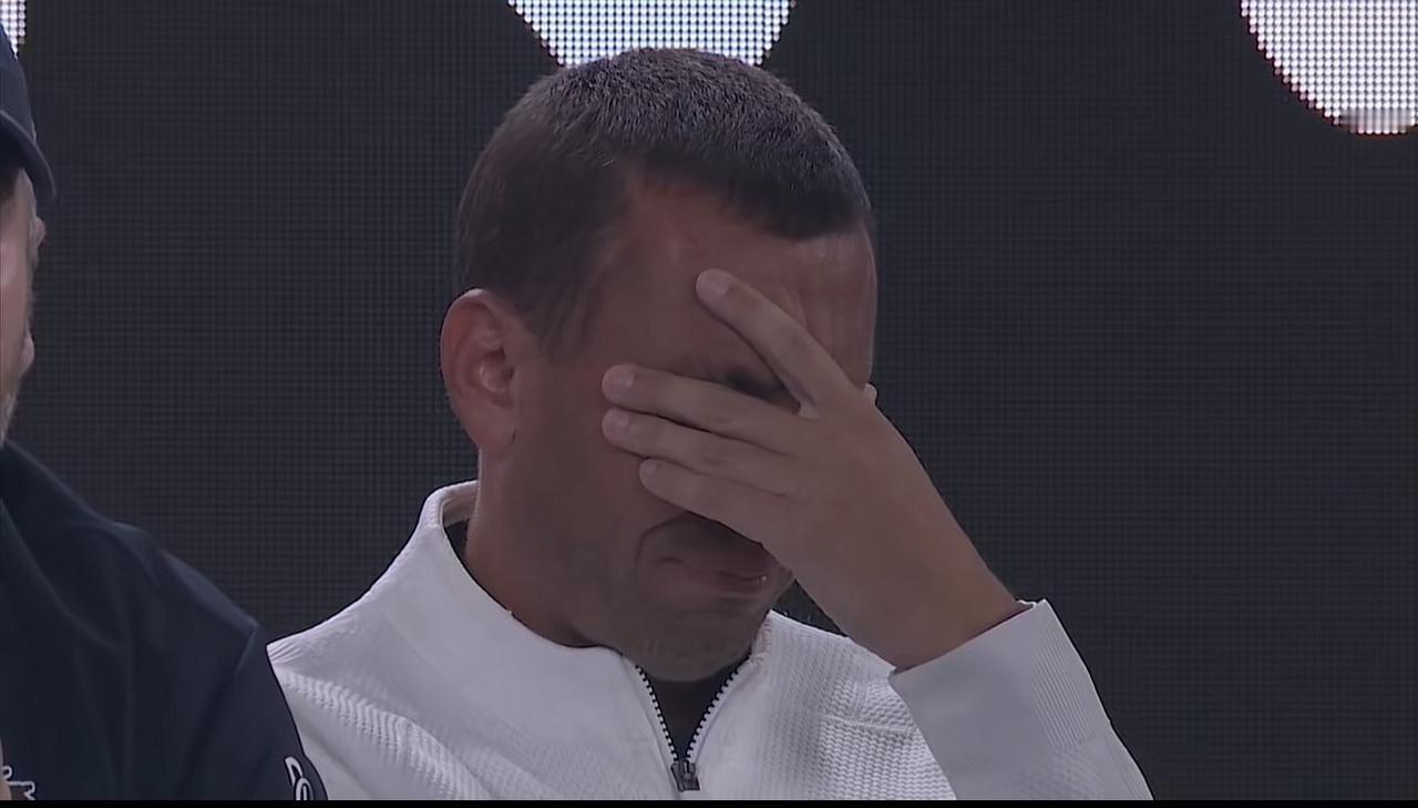 德约进决赛:有谁注意到他赛后的泪水! 赛后的德约科维奇,在记者递过来的话筒前,沉默了好一会儿,眼眶湿润,他用手摸了一把汗,也可能是眼泪。 然后他说,我想对辛纳说,谢谢你让我赢了一回,是你让我爆发了最大的潜能,我对辛纳充满敬意。 小德这番话,让场边的教练也忍不住在抹泪,无不让人动容。 这个年纪这个状态,谁知道他背后付出了多少。 小德的奇迹还在继续,加油啊