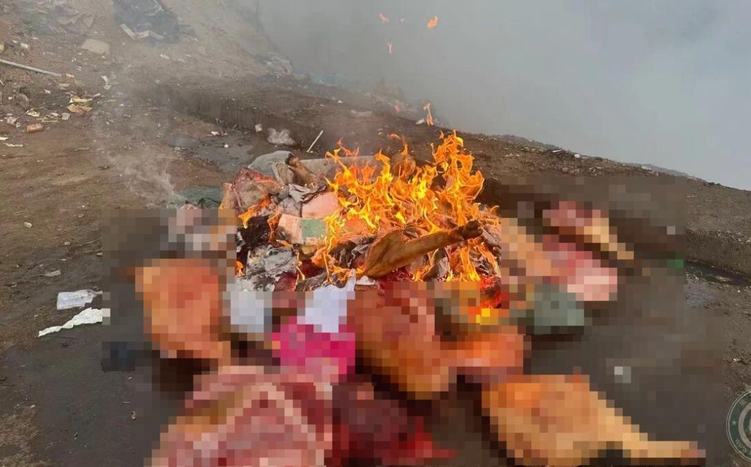 缅北果敢地区烧毁大量变质猪肉! 这批变质猪肉是小贩从佤邦南邓地区买进,之后在果敢地区售卖!这些售卖过期猪肉的摊贩,这胆子是真的大,当地果敢地区的民众,买了这些猪肉之后,回去发现都臭了,所以就赶紧举报,结果缴获了这么多过期猪肉。 你想一想,吃了这些过期变质的猪肉,身体得遭多大的罪,这种玩笑开不得。过期的猪肉,那是臭不可闻,还敢拿出来售卖。博主猜测这些猪肉,之前是在佤邦南邓地区的冷库里面存着,但是不知道什么原因,导致停电,然后没注意,放了几天之后臭了。 然后这些人为了减少损失,把这些变质猪肉,低价批发给这些果敢地区的小商贩,然后再拿出来售卖,是真的挣钱不要命。拿着过期肉去卖,搞出人命来,那可就麻烦了,所以幸亏抓得早。那些小商小贩那必须得要抓起来判刑了,这可不是搞笑的,售卖过期猪肉,在国内也是大罪。 这是属于过期食品,吃了之后真是对身体会造成严重伤害,所以果敢地区处理是很对,最终把这些变质过期的猪肉,全部集中销毁。主要是撒上汽油烧毁,要不然埋掩埋之后,搞不好还有别的人会把猪肉给挖出来,再去流通售卖,所以烧毁是最好的办法。