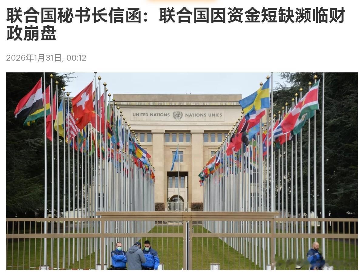 美国继续拖欠联合国会费,联合国秘书长开口了!1月31日,根据俄罗斯卫星通讯社报道,联合国秘书长安东尼奥·古特雷斯在一封致所有成员国的信中警告,联合国因资金短缺正面临着迫在眉睫的财政崩盘风险。古特雷斯表示,要么所有成员国及时足额履行缴费义务,要么必须从根本上修订财务规则,以避免即将出现的财政崩盘。 很显然,古特雷斯的这一封信,说的直白一点就是催讨联合国会费,而联合国拖欠会费第一大户就是美国。虽然说主要是向美国催讨会费,联合国秘书长却给所有成员国致信,可以说事情做的是滴水不漏。其一,这自然想表示,他本人不是针对美国,让特朗普不要多想。其二,这恐怕也是希望其他成员国出来发声,给美国施加压力。 事实上,特朗普2025年1月上任后几乎停止支付联合国会费,不仅如此,美国要以欠费施压联合国、削减多边投入 。美国累计拖欠联合国常规预算、维和经费等各类摊款超30亿美元,占全球总欠费的70%-90%。美国2026年元旦补缴了20亿美元,其中15亿用于填旧账,5亿为定向资金,实际仍欠近13亿美元。 而《联合国宪章》第十九条明确规定,“拖欠额超两年应缴数”的法定红线,将有可能丧失联大投票权。古特雷斯说的当然是实情,如果美国不缴费,联合国到今年七月份运行资金就面临告罄。事实上,在特朗普另起炉灶搞“和平委员会”,退出多个国际组织之后,美国对联合国兴趣越来越低。不排除美国又是拖到最后卡点续交,显然美国的行为事实上正越来越影响联合国的正常运转。
