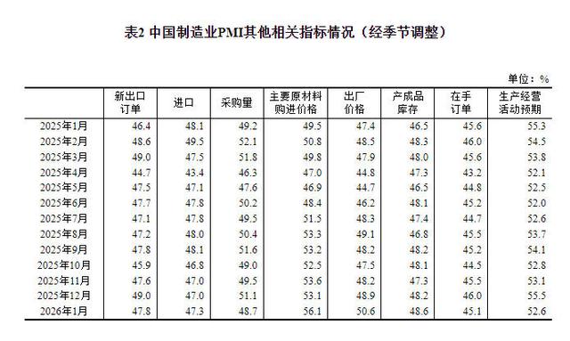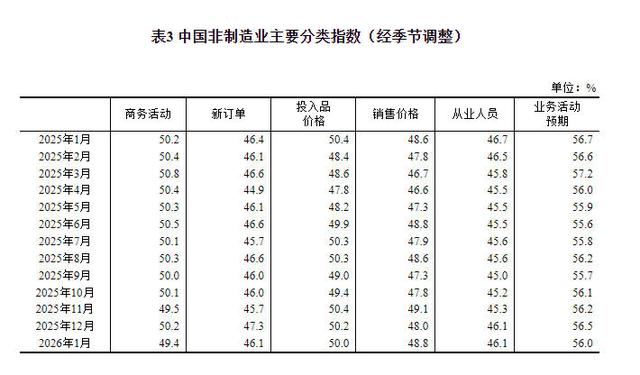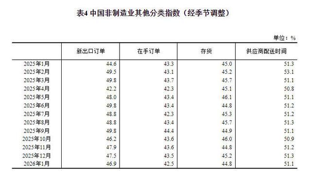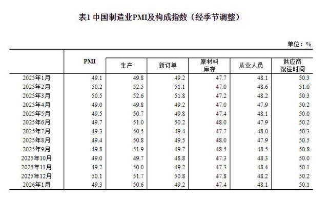 中新网1月31日电据国家统计局网站消息,国家统计局、中国物流与采购联合会31日发布2026年1月中国采购经理指数运行情况。