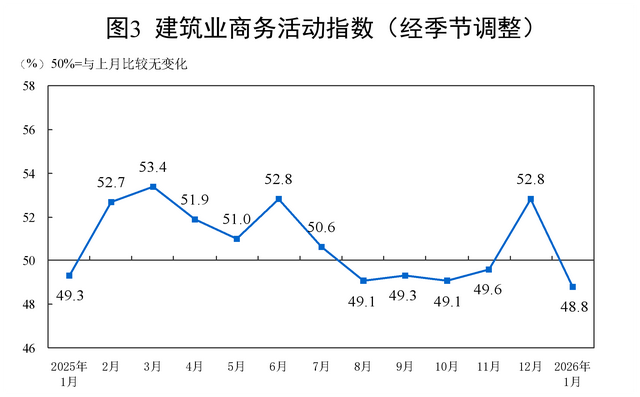 业务活动预期指数为56.0%,比上月下降0.5个百分点,仍位于较高景气区间,表明多数非制造业企业对市场预期保持乐观。分行业看,建筑业业务活动预期指数为49.8%,比上月下降7.6个百分点;服务业业务活动预期指数为57.1%,比上月上升0.7个百分点。