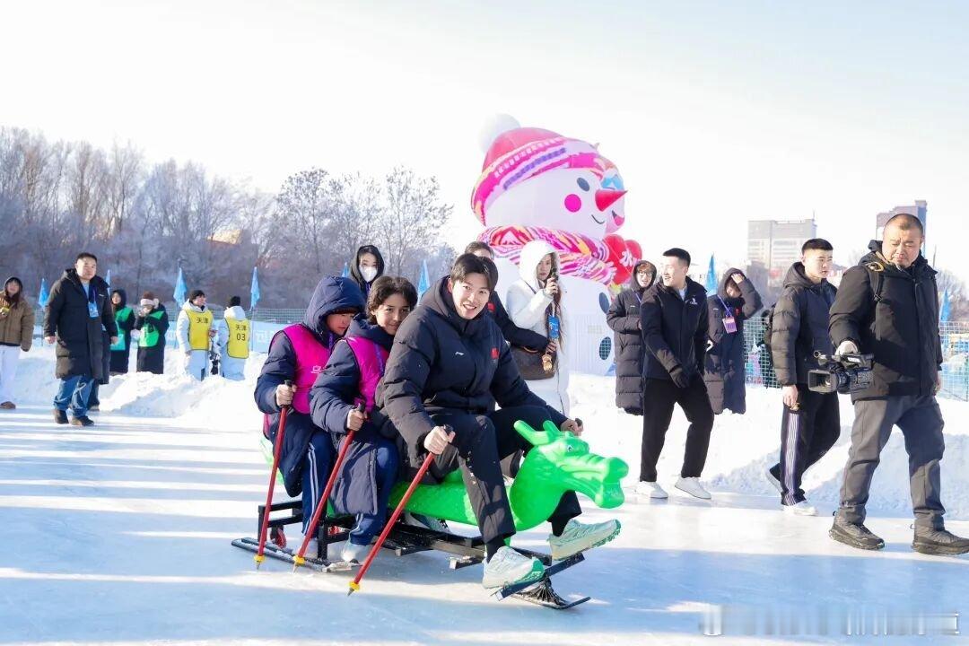 更棒的是,乌鲁木齐南湖市民广场还专门设了“玩冰乐雪”体验区,雪地拔河、冰上龙舟这些简单又有趣的项目,不管是谁都能参与,面向全社会开放!大家在玩闹中既能锻炼身体,又能磨练意志,真正实现“以体健身、以体强心、以体育人”的目标!