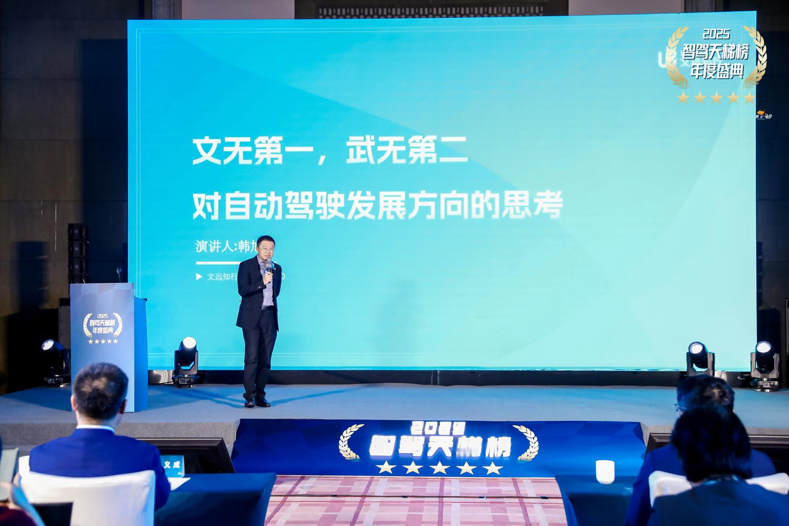 2025智驾天梯榜年度盛典中国智驾战力天梯榜 文远知行创始人兼CEO韩旭演讲主题为:文无第一,武无第二对自动驾驶发展方向的思考