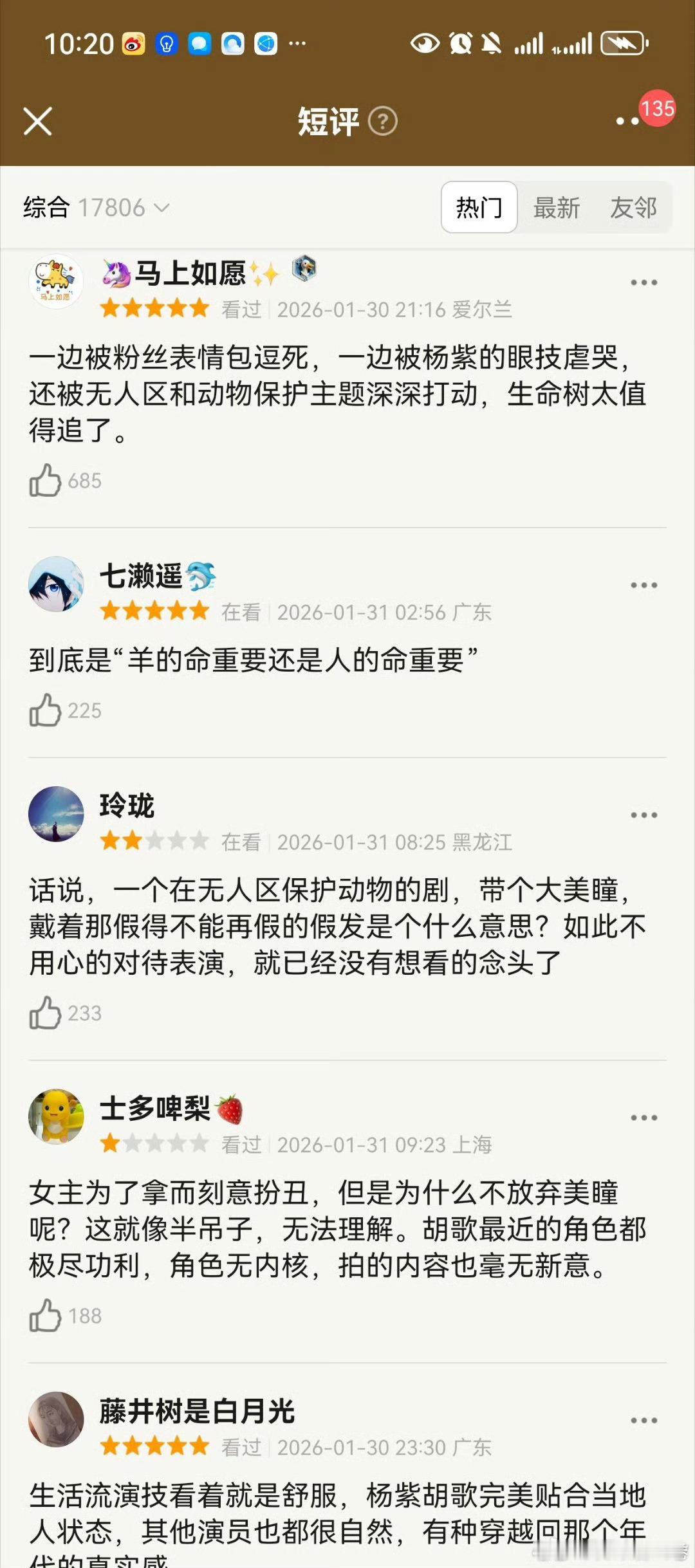 据我看来,哪一个明星播剧都会有差评,生命树热门也有很多的五星好评,但是锁分清差评这做法太高傲,难道必须是好评一个差评都不能有吗生命树疑似被恶意评分