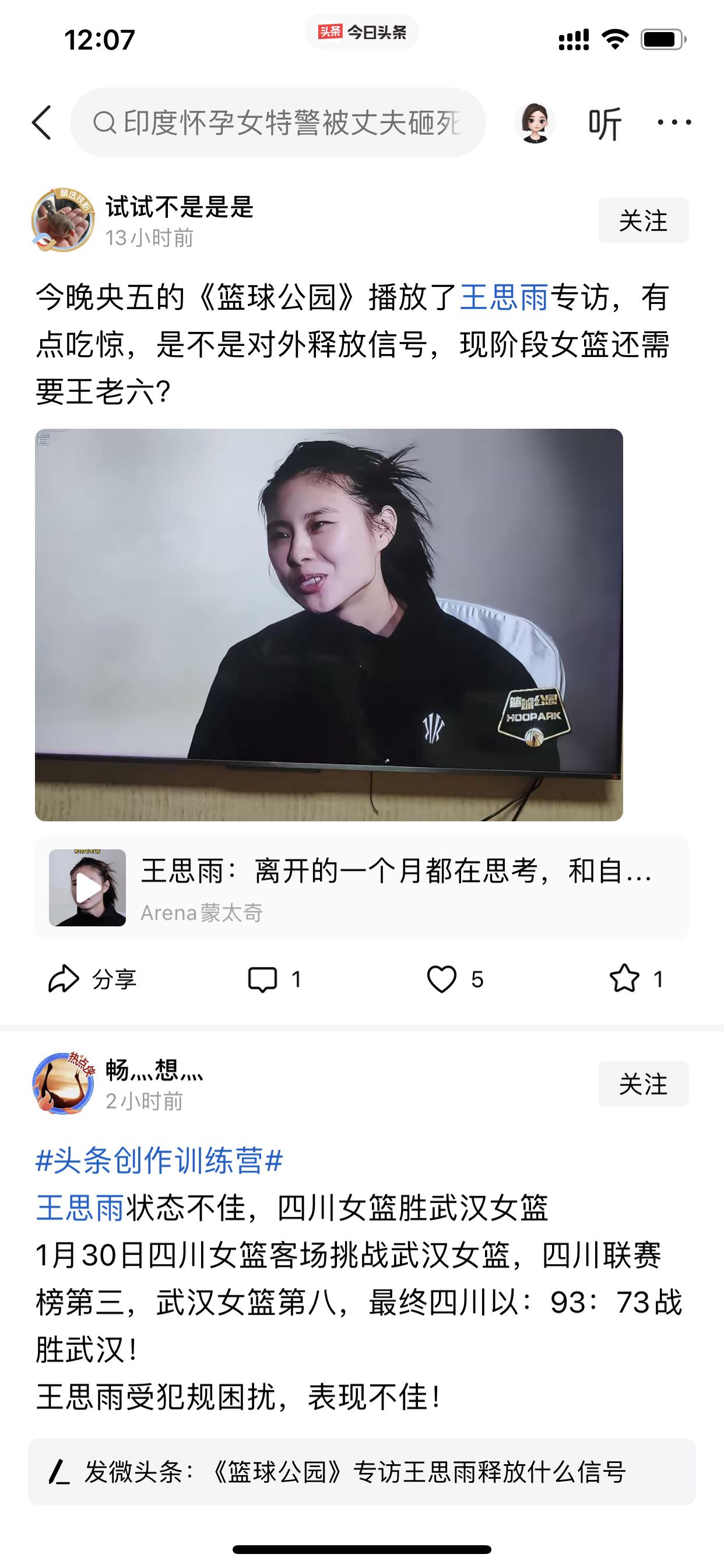 王思雨进不进国家队真不好说 不过我个人肯定是非常希望王思雨入选,也觉得王思雨值得国家队继续选择! 昨日,央视《篮球公园》栏目专访中国女子篮球运动员王思雨,有网友说这是不是意味着中国女篮国家队要增补王思雨进入国家队?(图二) 我的看法便是不好说 因为这个央视的“信号”并不明显,毕竟比这一期更早一点,杨力维、黄思静都有被《篮球公园》专访过 照此推测,岂不是杨力维、黄思静都要再回国家队? 因此,以此来推断实难说明这个事情 只能说央视高度认可王思雨是中国女篮曾经辉煌历史的创造者之一!