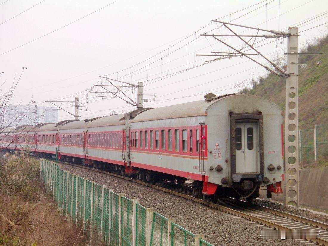 2012年春运期间拍到的一趟贵阳开往北京西的临客经过重庆枢纽,这趟临客用的25G型空调客车,由发电车供电,当然那时候临客普遍用平时牵引货运列车的机车牵引,过去铁路路网不如现在这么发达的时候,春运期间铁路部门经常会停货保客,也就是为了增加临客而减少一些货运列车。现在随着铁路路网的增加,尤其是大量高速铁路的建成,春运期间很多人也选择高铁出行,普线铁路增开的临客也比过去少了。