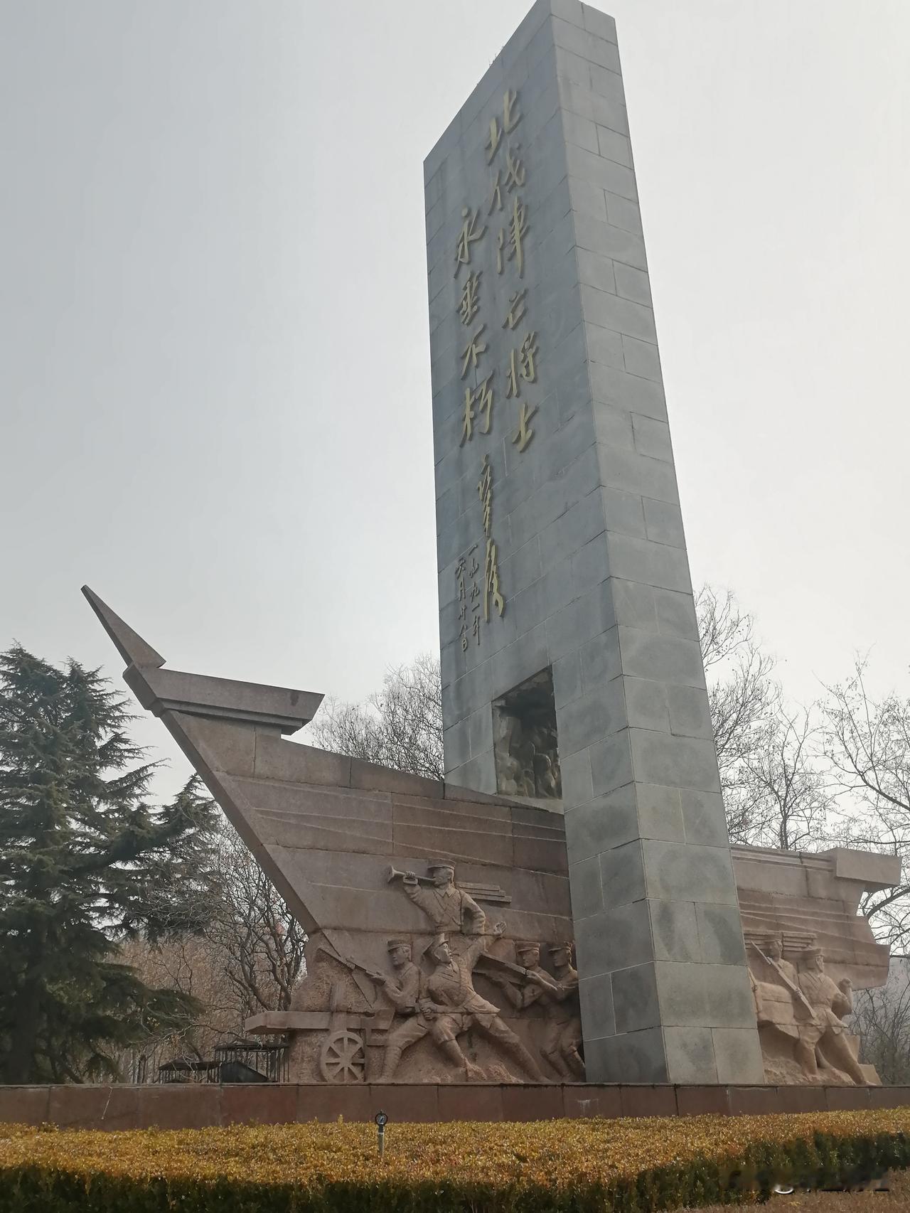 1928年,冯玉祥将军为缅怀在北伐战争中阵亡的将士,决定在郑州西郊一片名为“白沙岗”的荒沙地上修建烈士陵园。他取“碧血丹心,血殷黄沙”之意,将此地命名为“碧沙岗”,并亲笔题写园名,刻石镶嵌于北大门之上。当时陵园占地约24.6万平方米,建有烈士祠、三民亭(民族、民权、民生)、石桥、水池等,形成庄严肃穆的纪念格局。 如今人们所见的北伐阵亡将士纪念碑,则建于1994年,在原“抗日烈士纪念碑”旧址上重建,碑身高近18米,正面镌刻着聂荣臻元帅于1991年题写的“北伐阵亡将士永垂不朽”十个金色大字,碑体浮雕生动刻画了北伐军将士冲锋陷阵的英勇群像,象征着冲破黑暗、矢志报国的革命气概。 自建成以来,碧沙岗不仅成为国内保存最完整的北伐战争纪念陵园之一,也于1988年被命名为郑州市“爱国主义教育基地”,2008年再次被确认为省级教育基地。每年清明,无数市民自发前来敬献花束,凭吊英灵,在苍松翠柏间聆听历史的回响。