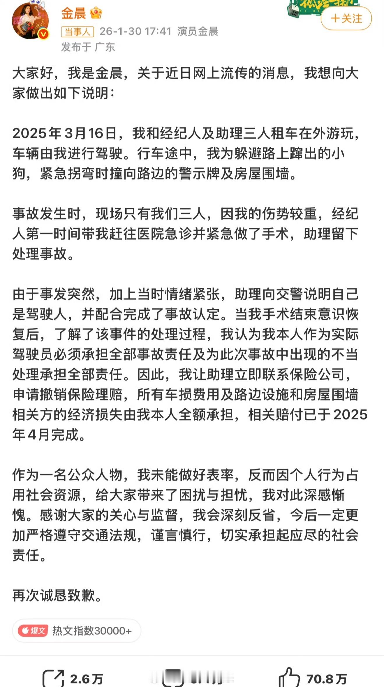 曝金晨经常半夜练车金晨经常晚上练车:“金晨,我今天一看见这个热搜,确实有点可惜,金晨是好多年前拿的本,她是一个当年我们看来开车上瘾的女生,可能那阵刚拿本,后来我们经常能看到她开车,她开车不像别的艺人开车,我们几次看到她开车都是大半夜,我们还以为大半夜出来干嘛,她开车我们在后面看着让我们感觉特别心慌,就走走停停还开得特别慢,我们还以为她看见我们了,后来才知道人家选择半夜出来是干嘛,人家就是过车瘾,人家就是练车来的,人家就是练车,白天车太多就选择晚上练车”