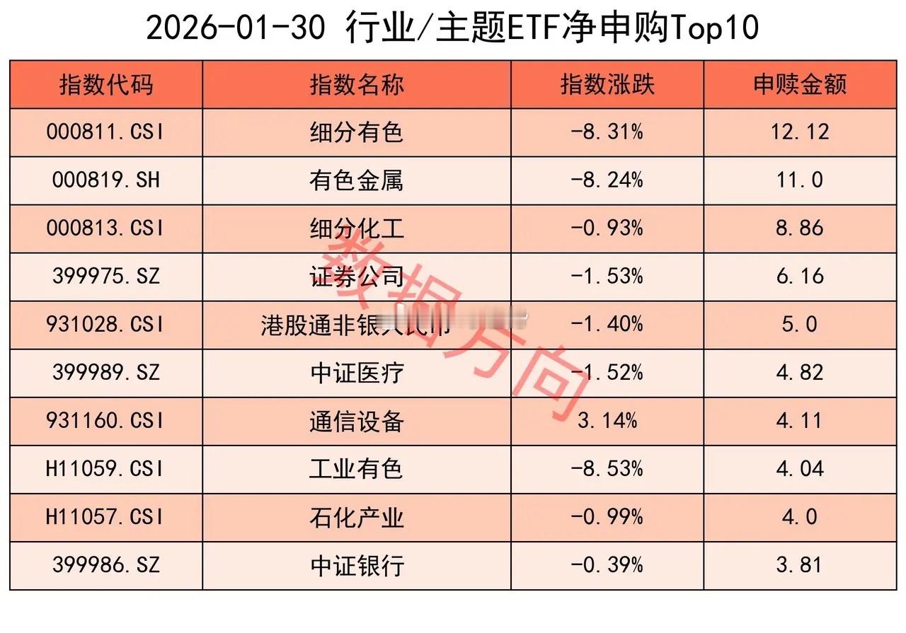 细分有色指数(12.12亿)、有色金属指数(11.0亿)、细分化工指数(8.86亿)、工业有色指数(4.04亿)、石化产业指数(4.0亿),一起进入申购榜。周五夜盘黄金、白银全线重挫,这里面很多资金估计要被埋了。