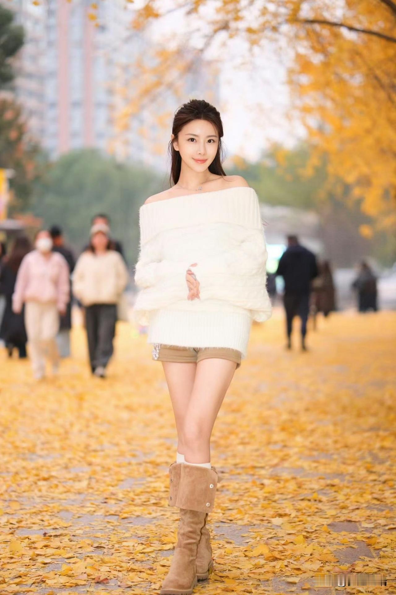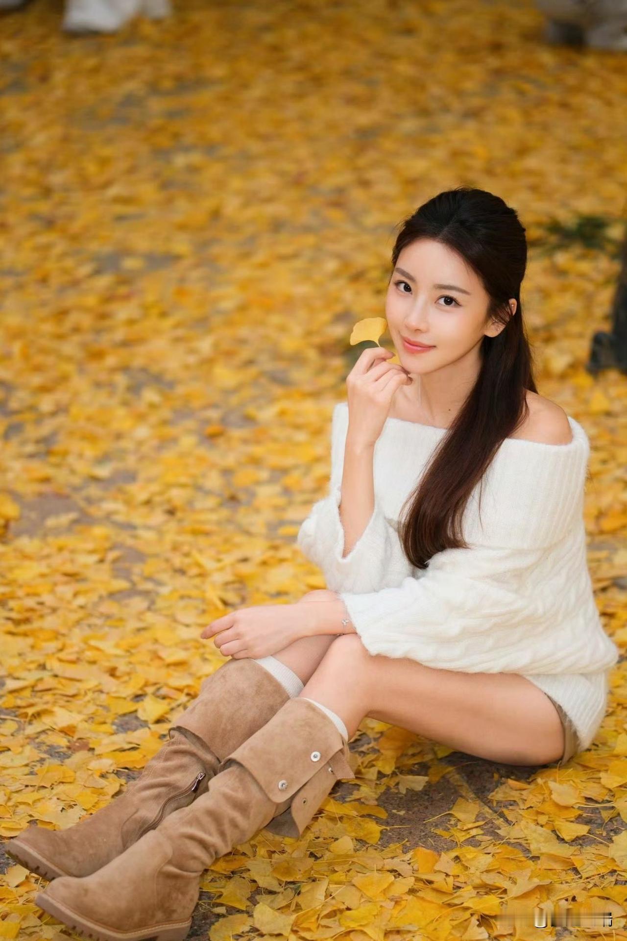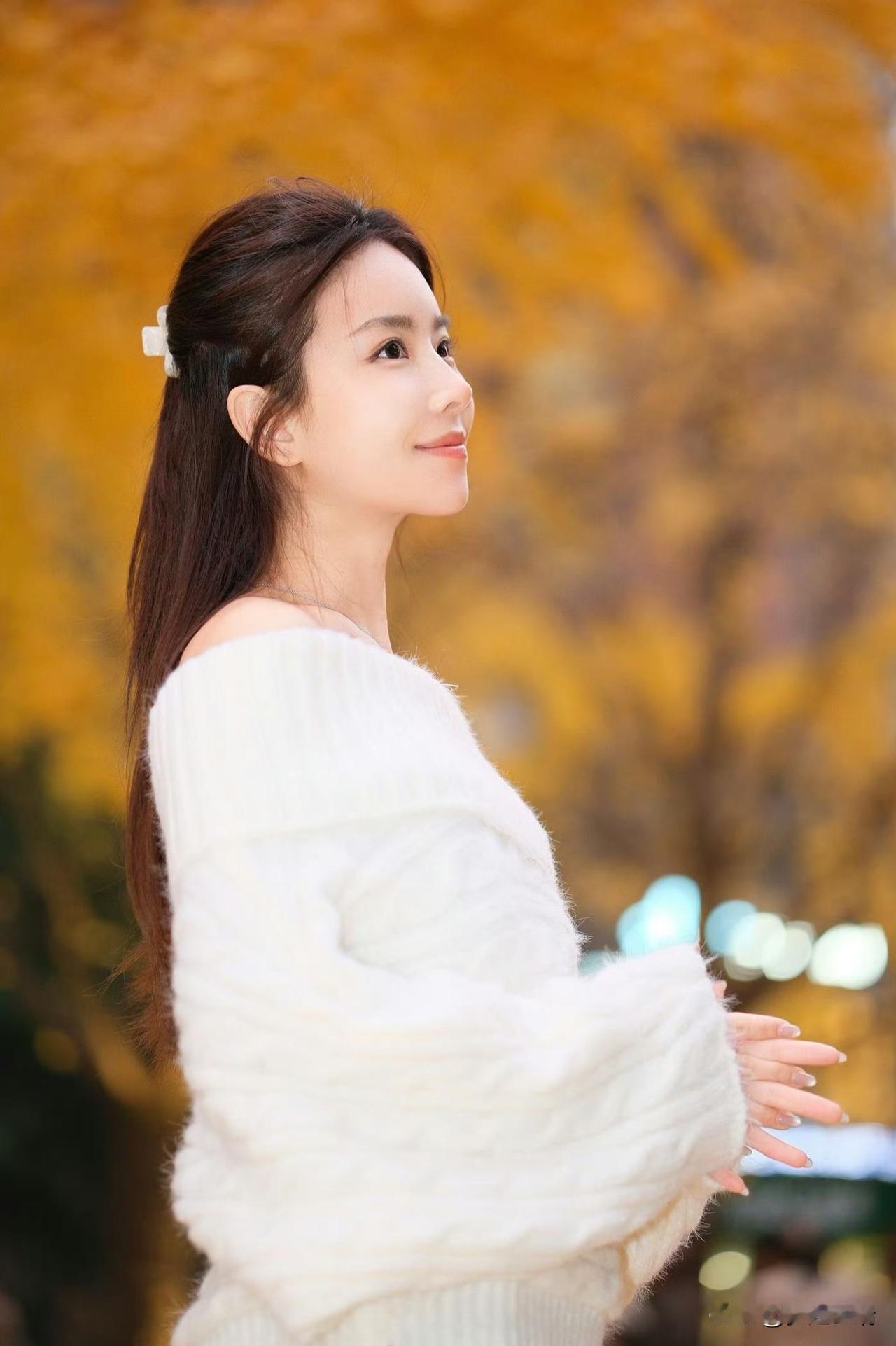 秋日暖阳下,少女与落叶共舞。