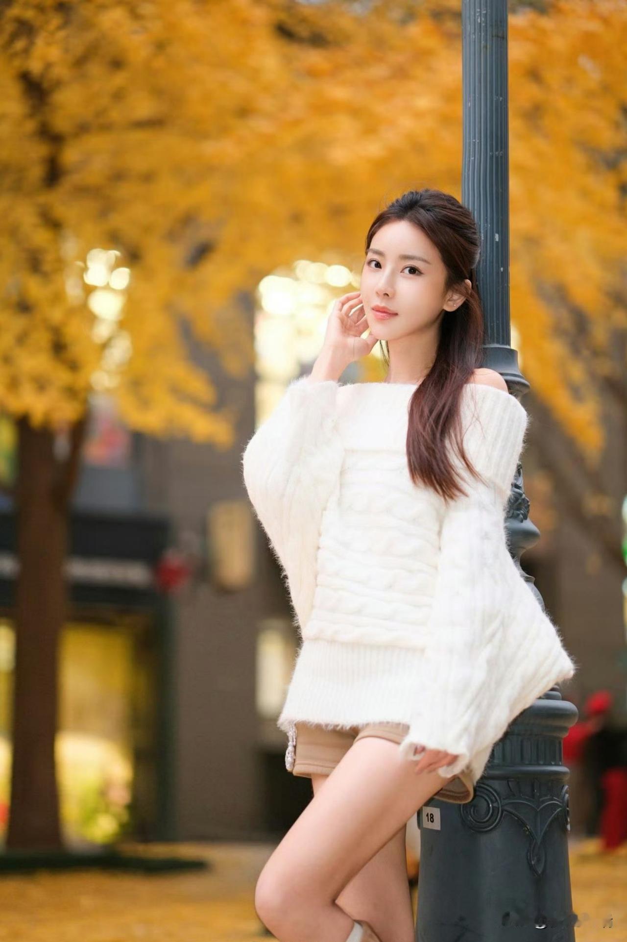 《紫衫伴秋光》秋阳裹着草木的暖香漫过草坪,她立在那里,像把午后的柔意揉作一