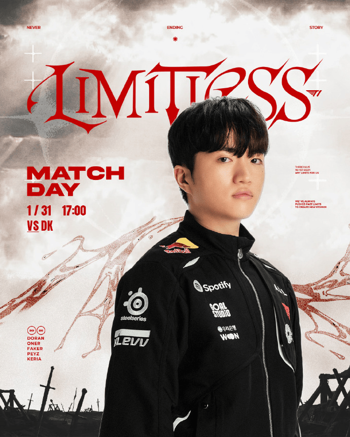 虎扑01月31日讯在即将开始的2026LCK杯DK对战T1的比赛前T1发文: