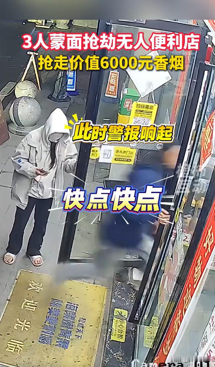 湖南永州,三个蒙面人在凌晨四点驾车来到某无人便利店,见四下无人,一人用手机熟练扫码,“嘀”声刚落,玻璃门应声而开。戴口罩的男子闪身入内,直奔香烟柜台,快速搬空货架上的香烟;同行的女子用身体抵住门缝,紧张地望向空荡的街头;不远处,一人开着遮住车牌的车在外接应。男子进出三趟,将背包塞满。就在最后一次搬运时,男子笨拙地弄响了警报器。三人仓皇逃窜,慌乱中竟在店门口掉落一只拖鞋。短短时间,他们用同样手法连续偷盗多家店铺,卷走价值数千元的财物。   据悉,2026年1月末,湖南永州迎来一年中最寒冷的时段。   凌晨四点,这座城市的绝大多数人还沉浸在睡梦中,街道上空无一人,只有零星的路灯洒下昏黄的光。   此时,一辆轿车缓缓停靠在一条偏僻街角的便利店门口,车未熄火,驾驶座上的男子警惕地观察着四周。   从车上走下两人,一男一女,均戴着深色面罩,脚上趿着拖鞋。   他们的装扮在寒夜里显得突兀而诡异,—面罩遮住了大半张脸,只露出眼睛;拖鞋则发出“啪嗒”轻响,在寂静中格外清晰。   另一名男子留在车内,负责接应。   这家便利店属于“无人值守”模式,顾客需通过手机扫码验证才能进入。   只见那名戴面罩的男子不慌不忙地掏出手机,对着门边的二维码扫了一下。   随着“滴”的一声轻响,门锁自动打开,他显然事先熟知操作流程,甚至可能多次“踩点”。   女子紧随其后,迅速用身体抵住玻璃门,防止其闭合发出声响,同时左右张望,担任“看守”。   店内灯火通明,货架整齐,却空无一人,男子目标明确,径直走向香烟陈列柜。   他动作麻利,将一条条香烟装入随身携带的大背包中,第一次装满后,他快速走出店门,将背包递给车内的同伙,随即返回店内继续搬运。   如此往复三次,背包渐渐鼓胀……   就在第三次搬运途中,意外发生了,便利店内的隐蔽警报器突然响起,尖锐的鸣笛声。   女子顿时惊慌,压低声音催促:“快走!”   男子闻声,一把抱起尚未装满的背包冲向门口。   三人仓皇跳上车,引擎轰鸣,车辆疾驰而去。   由于过于慌乱,那名进出店铺数次的面罩男子,在跳上车时竟掉了一只拖鞋。   事后统计,该便利店共计丢失香烟数十条,总价值约人民币6000元。   而据店主反映,当晚同一时段,当地另有4家无人值守便利店遭遇类似手法盗窃,损失仍在统计中。   尽管警方已介入调查,但嫌疑人利用面罩遮挡面部、车辆遮挡车牌,且选择在监控相对薄弱的后半夜作案,为侦查工作带来了一定难度。   目前,案件正在侦办中。   案发后,很多人说三人的行为是盗抢,有抢劫嫌疑,但法律上‘偷’和‘抢’性质截然不同。在普及法律知识时,用词严谨至关重要,以免发生错误判断。   那么,从法律角度,这件事如何评价呢?   《刑法》第二百六十三条规定,抢劫罪是以非法占有为目的,使用暴力、胁迫或者其他方法,强行劫取公私财物的行为,其核心特征是 “手段的强制性”与“取财的当场性” ,且该强制手段需足以压制被害人反抗。   本案中,三个嫌疑人选择在“无人值守”的便利店作案,自始至终未与任何人发生直接面对面的对峙,更未实施任何暴力或胁迫行为。   尽管警报响起,但其行为对象是财物而非人身,故完全不符合抢劫罪的构成要件。   《刑法》第二百六十七条规定,抢夺罪是乘人不备,公然夺取数额较大的公私财物的行为。其关键在于 “公然夺取”和“对物施用暴力” 。   本案中三个,嫌疑人通过扫码开门秘密进入店内,其取得财物的方式是将香烟装入背包带走,属于“秘密窃取”而非“公然夺取”。   虽然最终警报响起,但此时财物已基本得手,逃跑行为发生在盗窃既遂之后,不影响先前取财行为的“秘密性”本质。   《刑法》第二百六十四条规定,盗窃罪的指的是以非法占有为目的,采取秘密窃取的方式,将他人占有的财物转移为自己占有。   具体到本案,在无人值守的便利店中,尽管有监控设备,但无现场管理人员,三个嫌疑人利用非营业时间、蒙面伪装、扫码进入,其主观上自认为行为不被店家即时察觉,客观上也确实在警报响起前未被现场制止,其行为整体具备秘密窃取的特征。   所以,三个嫌疑人涉嫌的犯罪是盗窃罪,而不是抢劫罪、抢夺罪。   《刑法》第二十五条规定,共同犯罪是指二人以上共同故意犯罪。   可见,涉案三人事前通谋、分工明确,具有共同犯罪故意,应对盗窃总额共同负责。   此外,结合《刑法》第二百六十四条规定,盗窃公私财物,数额较大的,处三年以下有期徒刑、拘役或者管制,并处或者单处罚金;数额巨大……处三年以上十年以下有期徒刑,并处罚金;……   本案中,一个店铺的损失6000元已属“数额较大”,若查实系流窜作案,总额将累计计算,可能达到“数额巨大”,基础刑期将显著提升。   对此,您怎么看?
