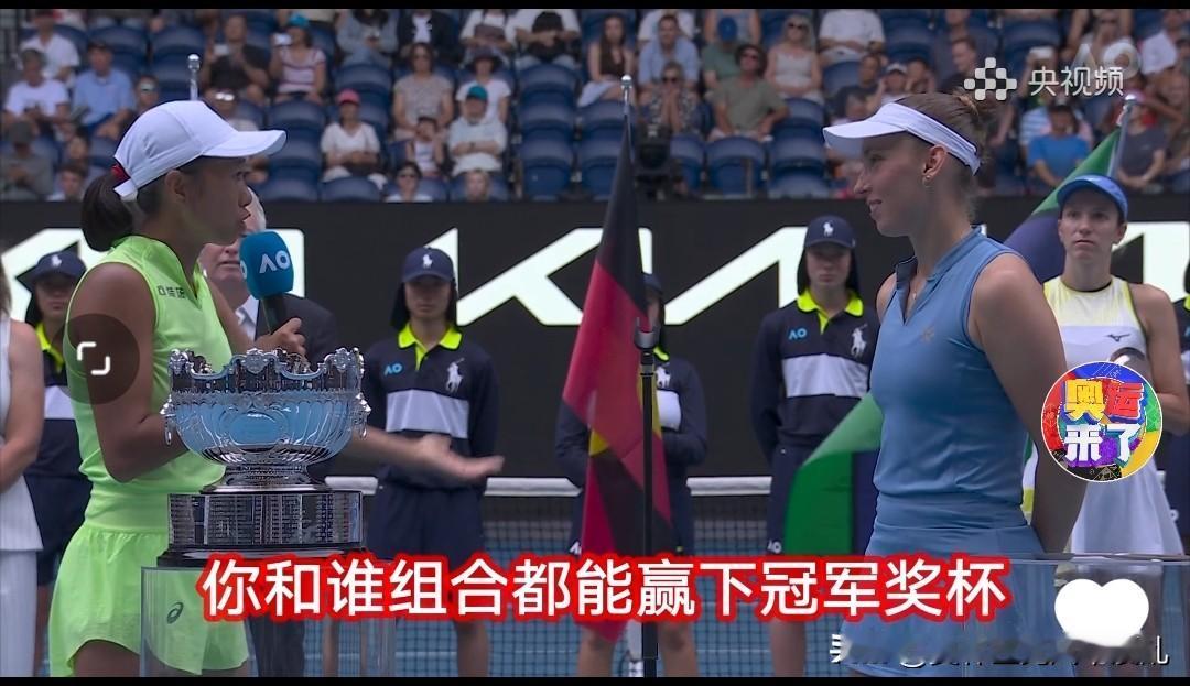 感谢所有知道我名字的人,张帅澳网夺冠! 女双冠军,中国选手张帅和跨国搭档比利时球员梅尔滕斯夺得!要知道我们的张帅37岁了,就比不老战神德约小一岁,夺得大满贯冠军不容易!颁奖典礼现场她感谢了祖国,感谢所有人。
