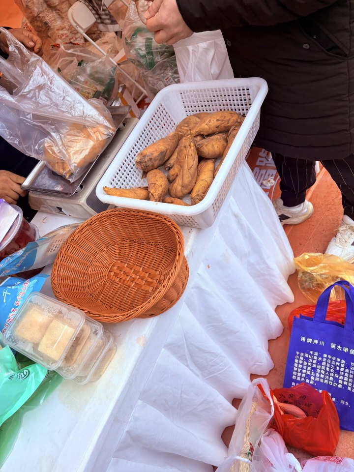 “喏——今天买了香匪、土猪肉、日晒面、青菜、红薯冻米糖……才走了半圈就买了四五百块钱东西了,一会儿我们还要去买些鱼干、鱼丸。”李大伯的老伴对于逛吃乐此不疲,还会掏出手机打开计算机货比三家,只要试吃得好、价格美丽,立马购买,她的拉杆小车里已经鼓鼓囊囊,再买都要往外挂了。