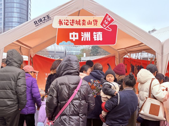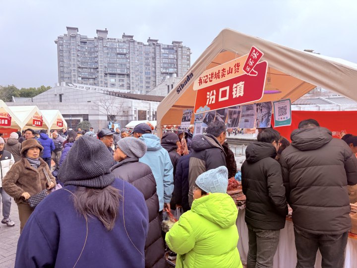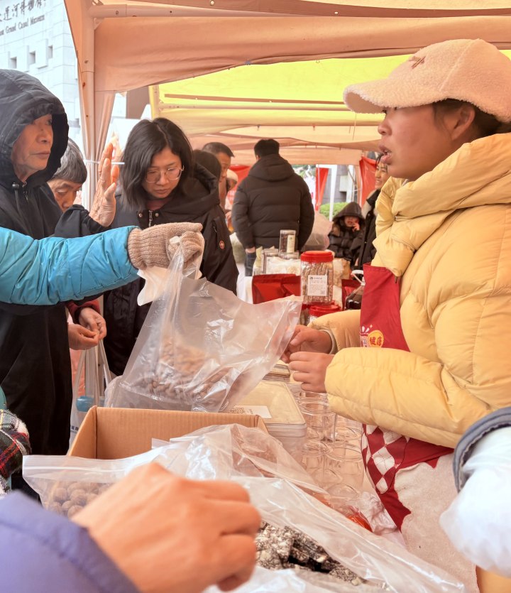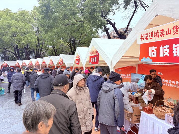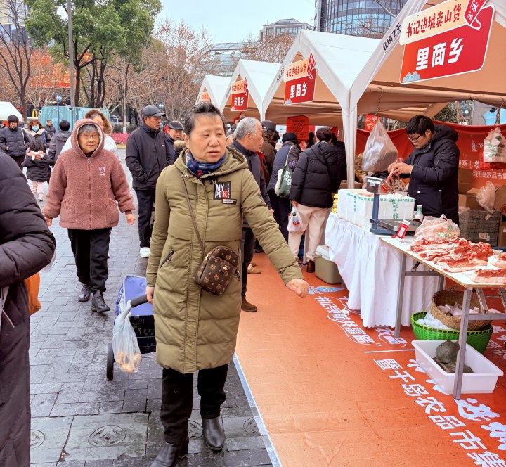 下午2点,杭州运河广场上前来购买“书记进城卖山货”农产品的市民熙熙攘攘,尽管今天凌晨的雪再次让杭城降温,但大家伙儿采购淳安优质山货的热情再也挡不住了。