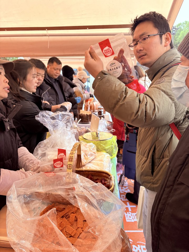 喜欢淳安“书记进城卖山货”品牌的,可不只有大伯大妈们,还有“80后”“90后”“00后”的年轻人们,家住拱墅区的“80后”凌先生两手拎满了鲜鸡、土猪肉、甲鱼、香肠、豆腐等山货,继续意犹未尽地采购。