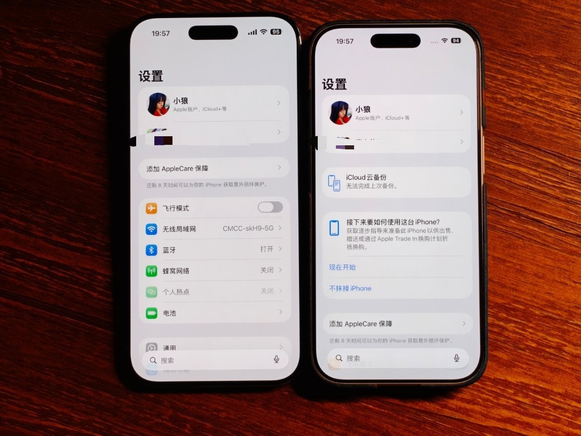 iPhone Air抽到LG屏了(左),比iPhone 17 Pro的三星屏幕一眼更黄更绿,可视角度也差很多,肉眼看起来比照片明显多了