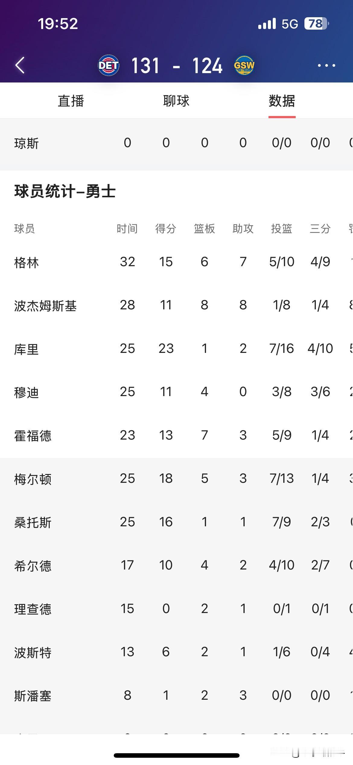 没有巴特勒的勇士一胜难求呀?看看迷茫中的库里真的是很无奈,又被活塞按在地上摩擦了。 这场比赛活塞队那强硬的防守让勇士队进攻处处受阻,库里一次次突破、传球、寻找着进攻机会,可队友们就是没办法把球稳稳送进篮筐,场上的库里满脸写着焦急,他试图扛起球队的进攻大旗,却仿佛是在孤军奋战,还有一点不得不吐槽,格林都开始主攻三分的时候,说明他心态也崩了,说明他也不防守了。球队里缺少了巴特勒这样能得分又能攻坚的球员,勇士队的进攻明显少了层次感。