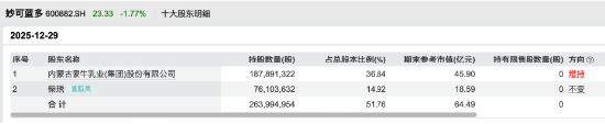 截至2025年底的股东结构,已清晰显示蒙牛的控股地位。