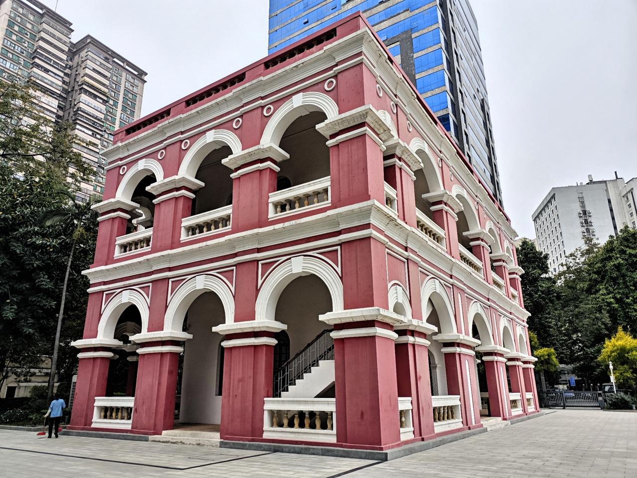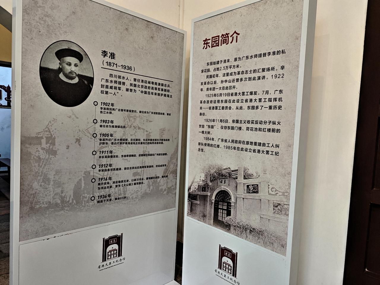 团一大广场旁那栋红色的洋楼,除了是省港大罢工纪念馆之外,还是广州名园“东园”的遗址。只不过东园在一次火灾中几乎焚毁,就连红楼也是1984年重建的,附近的街坊可能就比较清楚了。 东园始建于清朝末年,是广东水师提督李准的私家花园,占地2.5万平方米。规模之大,除了省港大罢工纪念馆区域,几乎涵盖了整个团一大广场,都是原来东园的范围。 靠想象有点抽象,若想更直观了解当年的这座名园的建筑规模和布局,可以上红楼的二楼,展厅正中央有一个东园的建筑模型图。里面罗列了当时东园的主要建筑。其中现在的广场区域,是当年东园的一个小湖。 现在我们还能看得到多少原来的建筑?那场大火烧得没剩多少了,仅剩下中部的荷花池和东园门楼,此外还有一棵当年烧剩下的大树。从留下的原物来看,也足矣想象当年东园的气派。 原本想从门楼穿过拍一拍东园的牌匾的,事实上过不去,它在纪念馆外的居民区范围,又留了一次过来这里的理由。 广州老城果真是一座宝库,只要多看一眼,留心一下,总能发现惊喜之处!花园 周末 东园 越秀 老城区 广州