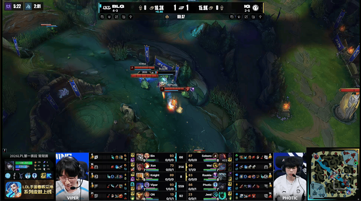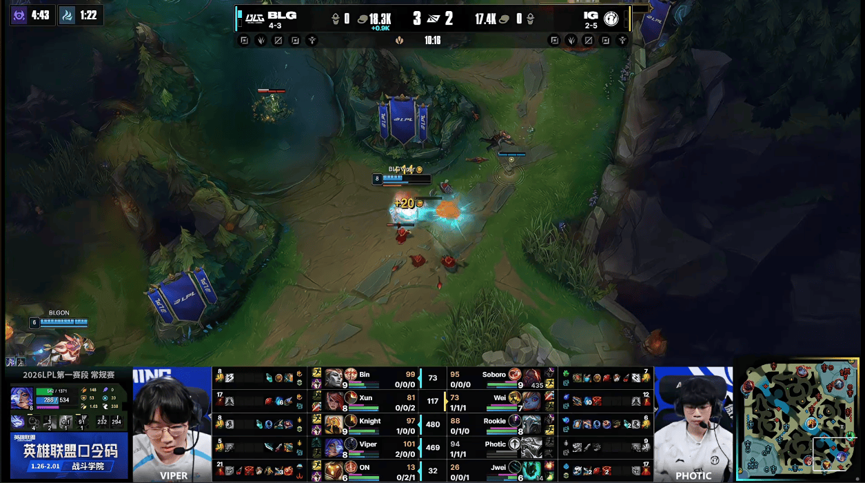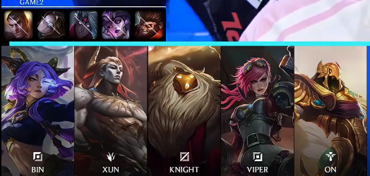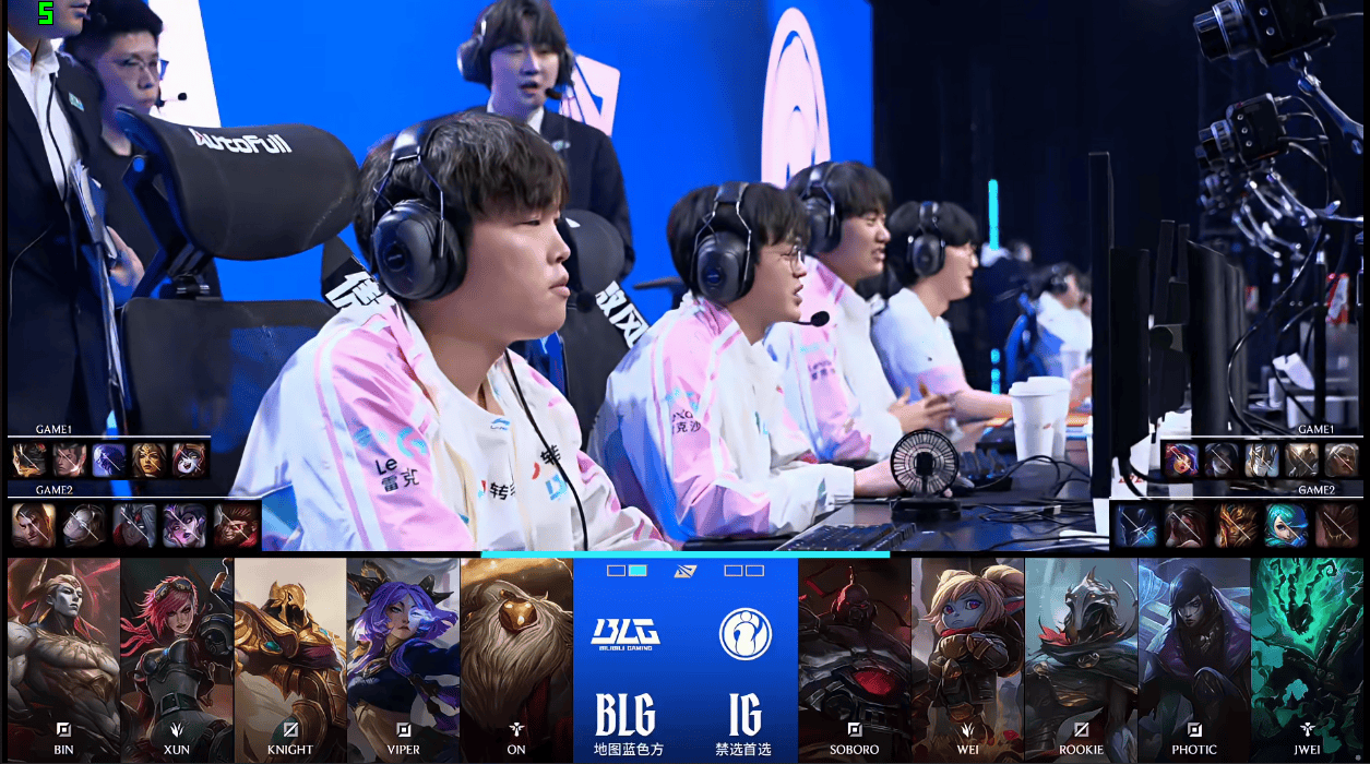 BLG选用:Bin亚恒;Xun蔚;Knight沙皇;Viper芸阿娜;ON巴德