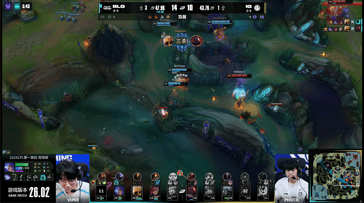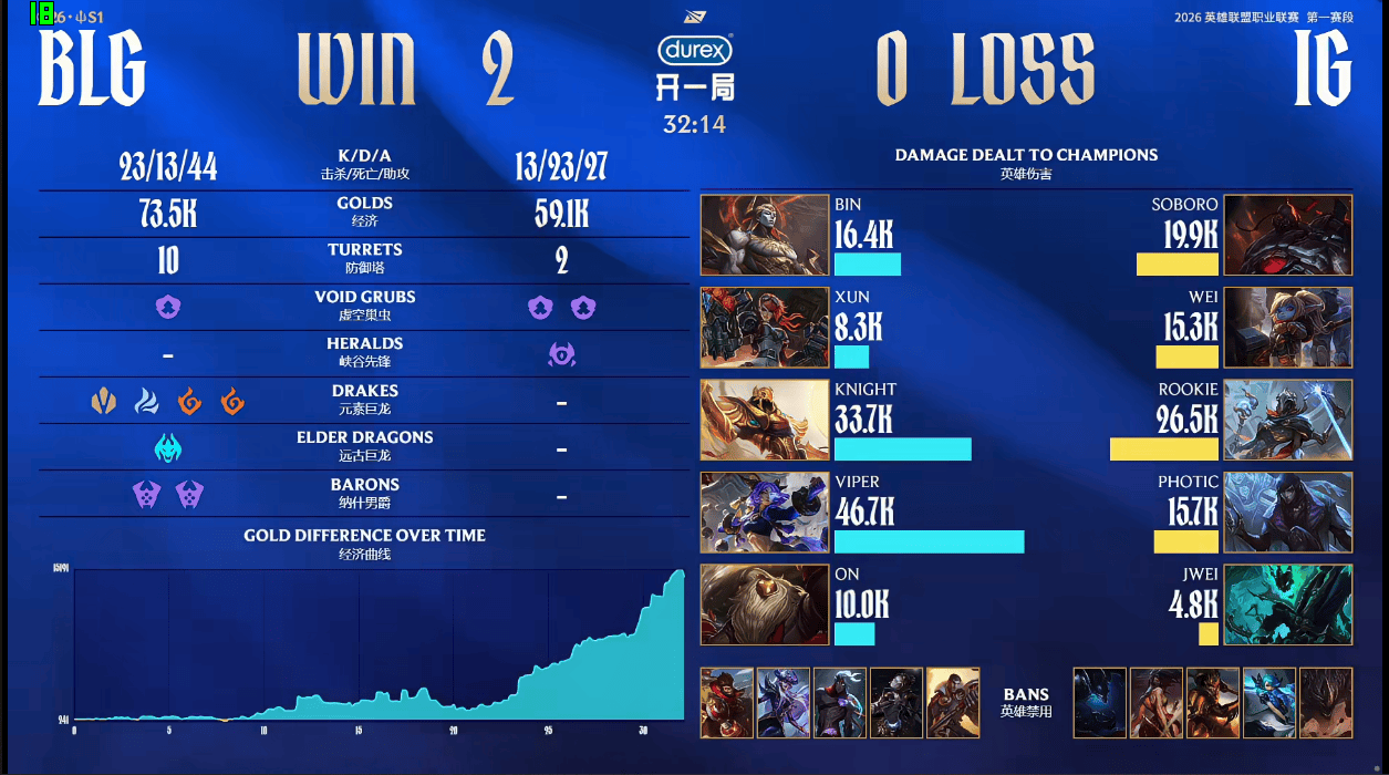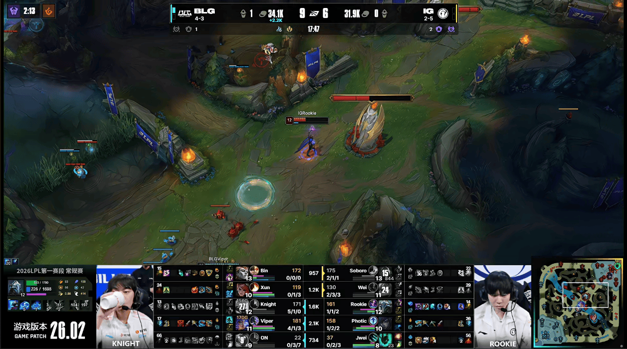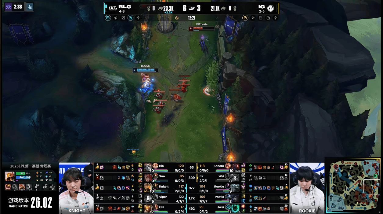 虎扑01月31日讯GAME2:BLG蓝色方;IG红色方