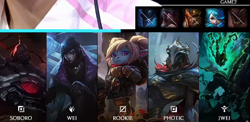 IG选用:Soboro塞恩;Wei波比;Rookie维克托;Photic厄斐琉斯;Jwei锤石
