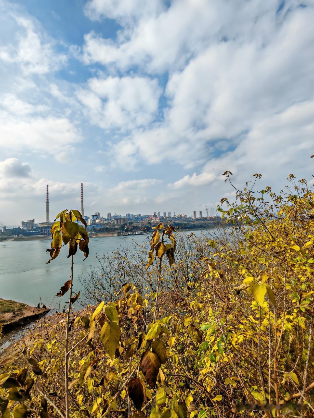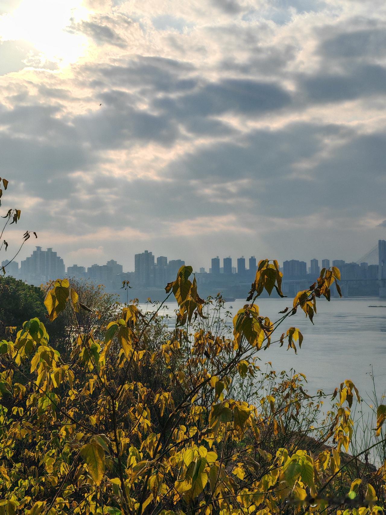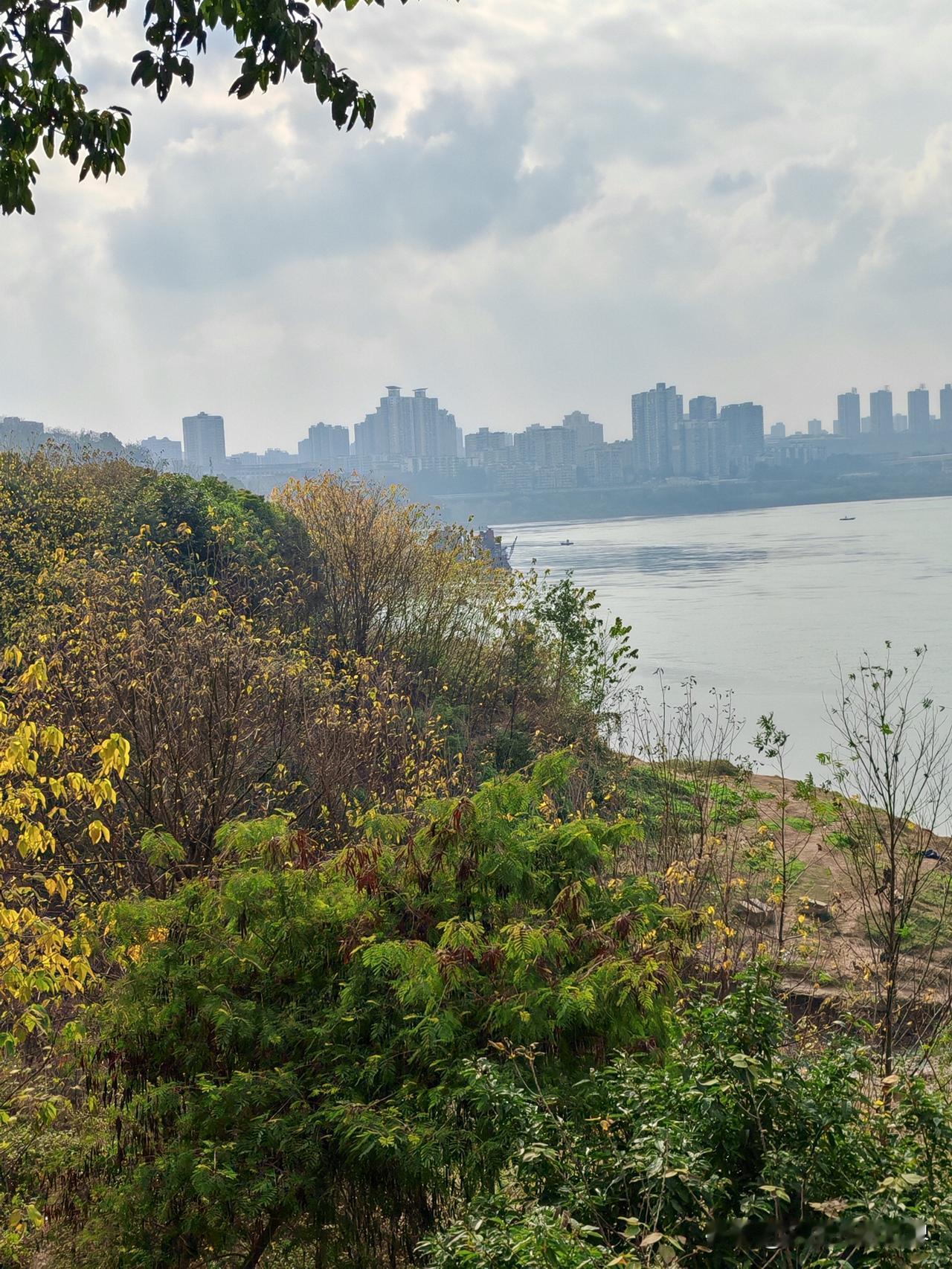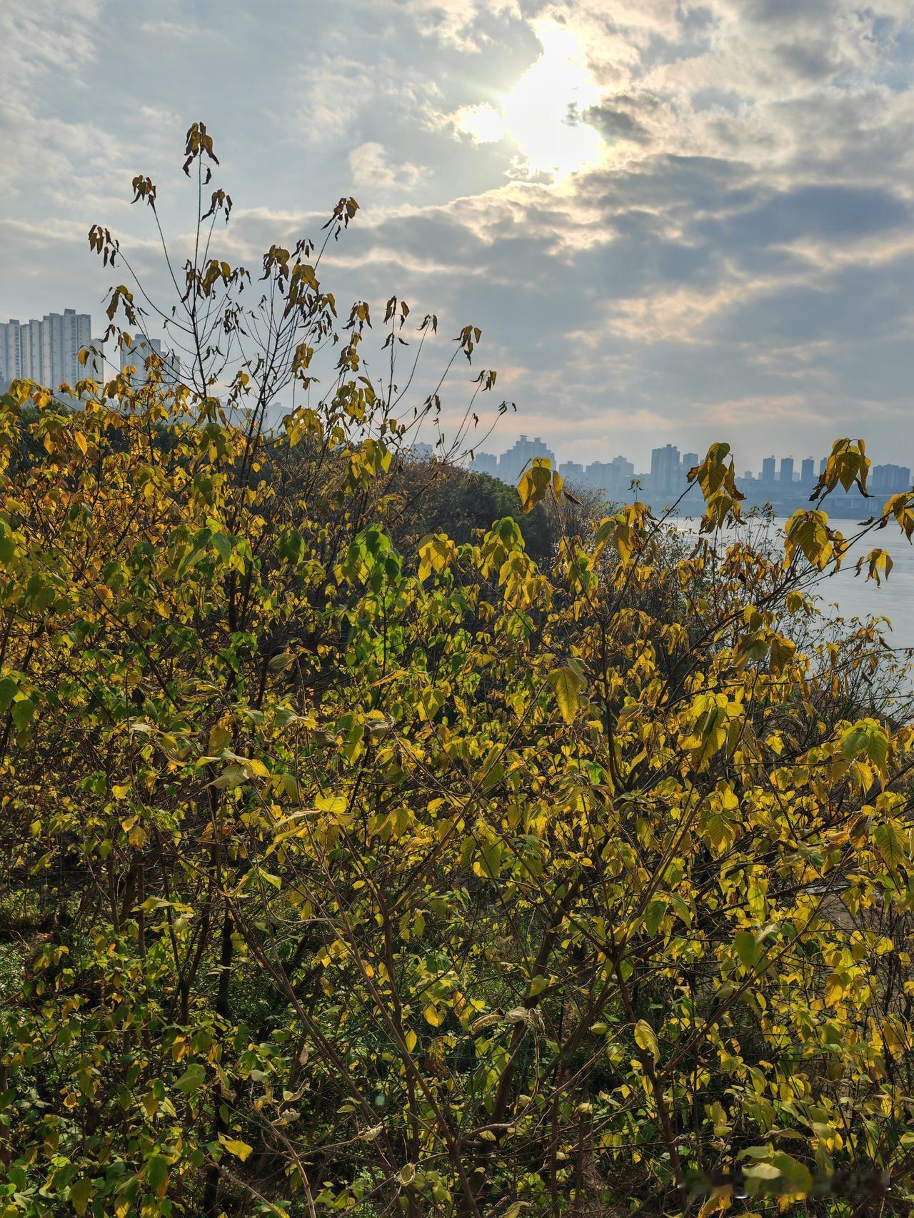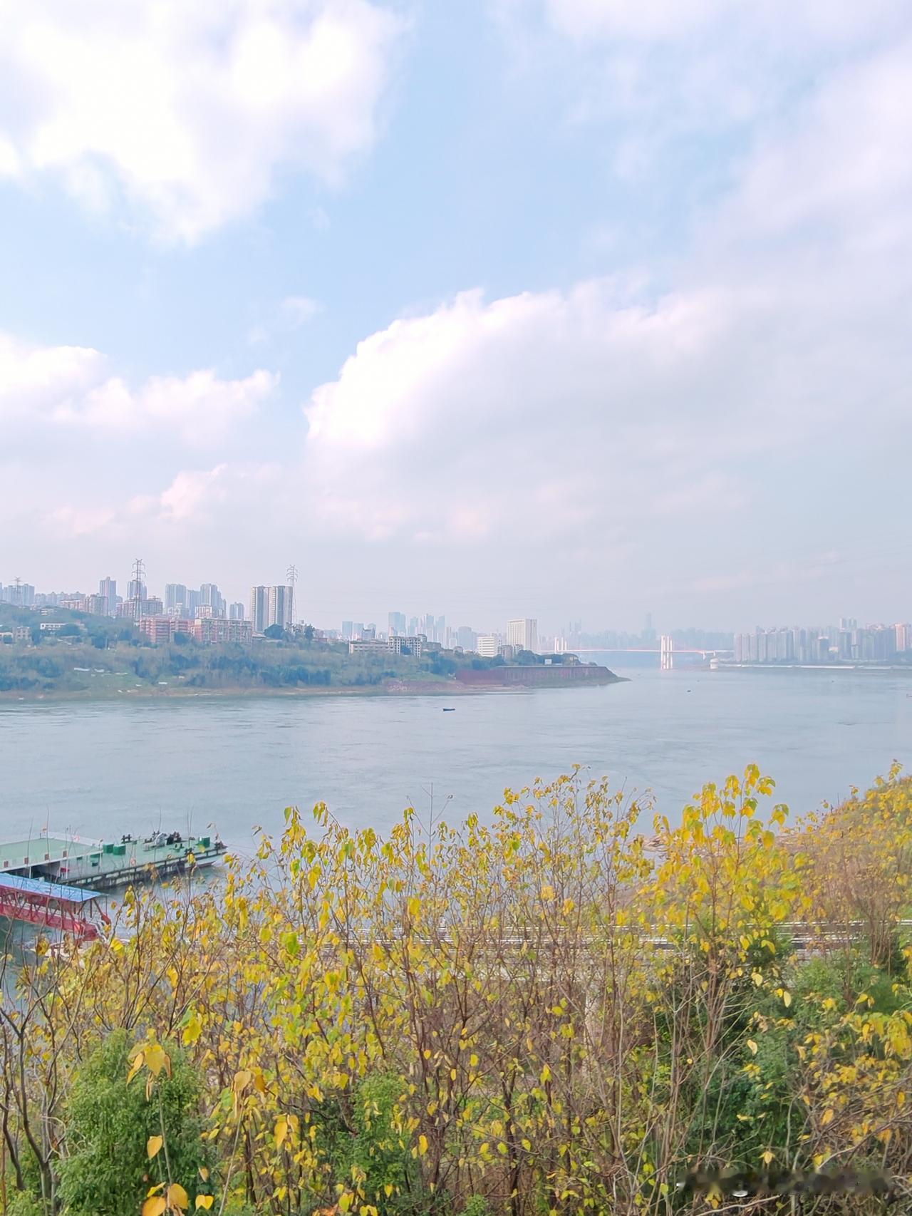 今年冬天还真的不一样。重庆以往冬天一到,天空总是阴沉沉雾蒙蒙的,可今年冬天感觉没那么冷,太阳时不时的出来露露脸。就像古诗里说“烟波江上使人愁,秋水长天一色秋”,在冬天哪有这烟波浩渺的诗意。今天是1月31号,月末最后一天,我走在巴滨路江边,蓝天白云,江水悠悠,构叶树黄竟有几分秋意的朦胧。 往年冬天这个时候树木早就光秃秃,今年有些树的叶子还没落尽,黄绿交织着。与江岸相映多了些别样的宁静与温和。巴滨路这不同的冬天之景,给生活添了几分的诗意。