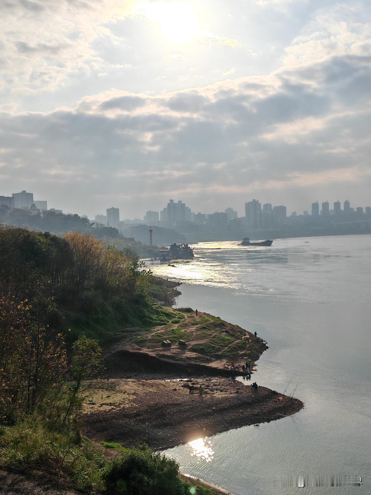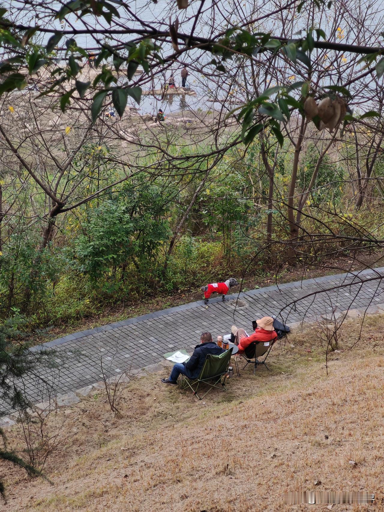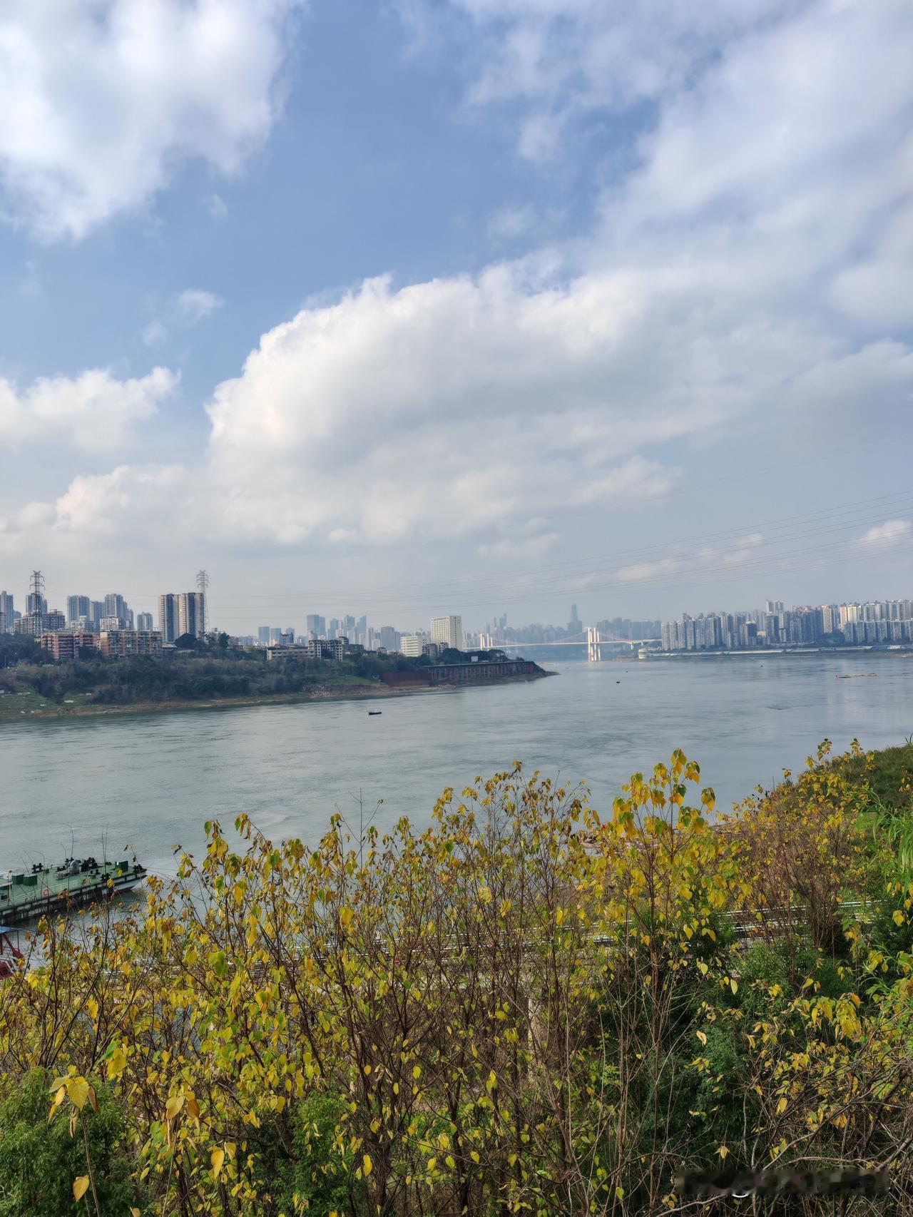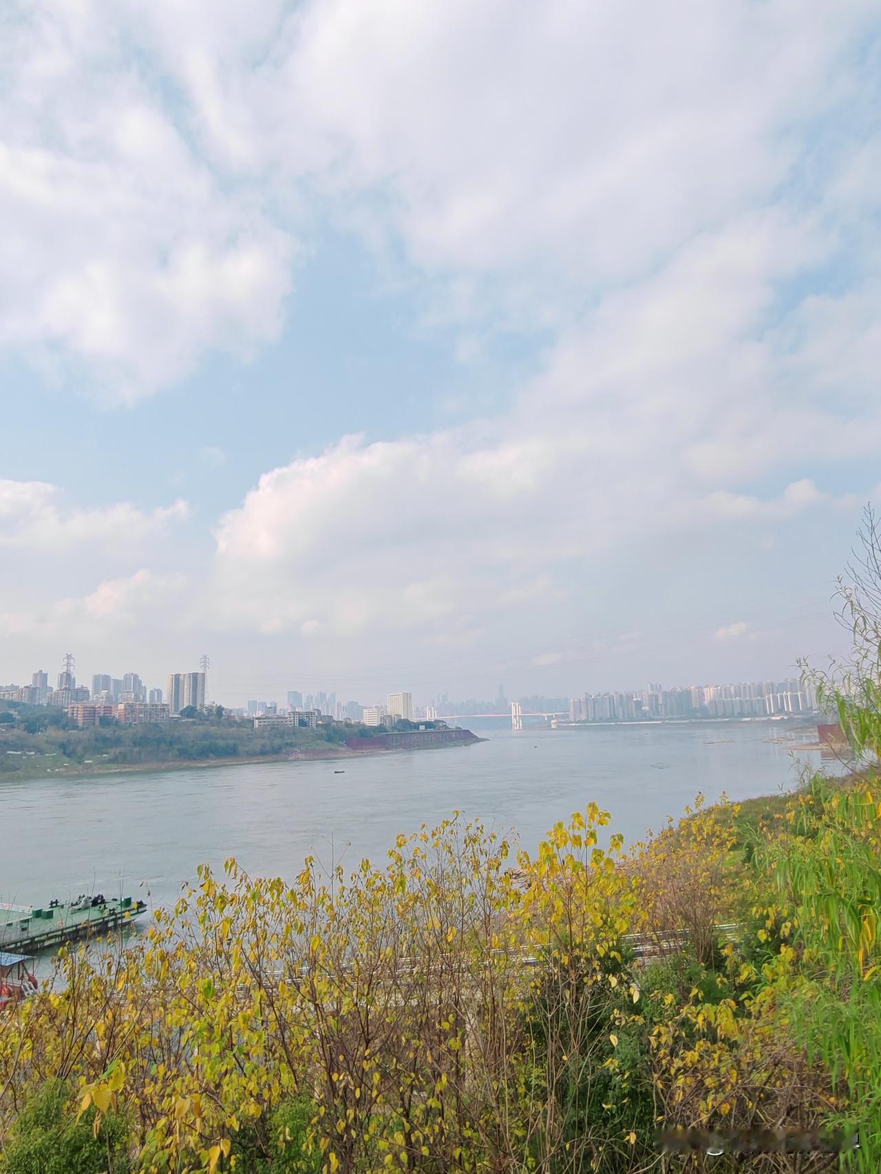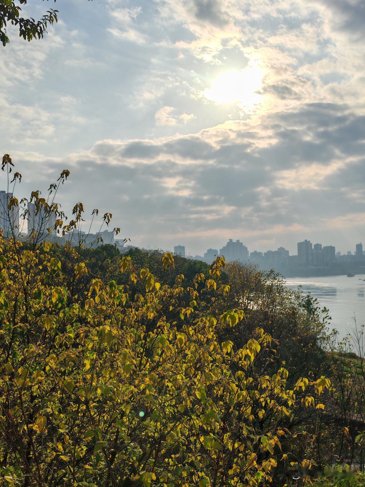 今年冬天还真的不一样。重庆以往冬天一到,天空总是阴沉沉雾蒙蒙的,可今年冬天感觉没那么冷,太阳时不时的出来露露脸。就像古诗里说“烟波江上使人愁,秋水长天一色秋”,在冬天哪有这烟波浩渺的诗意。今天是1月31号,月末最后一天,我走在巴滨路江边,蓝天白云,江水悠悠,构叶树黄竟有几分秋意的朦胧。 往年冬天这个时候树木早就光秃秃,今年有些树的叶子还没落尽,黄绿交织着。与江岸相映多了些别样的宁静与温和。巴滨路这不同的冬天之景,给生活添了几分的诗意。