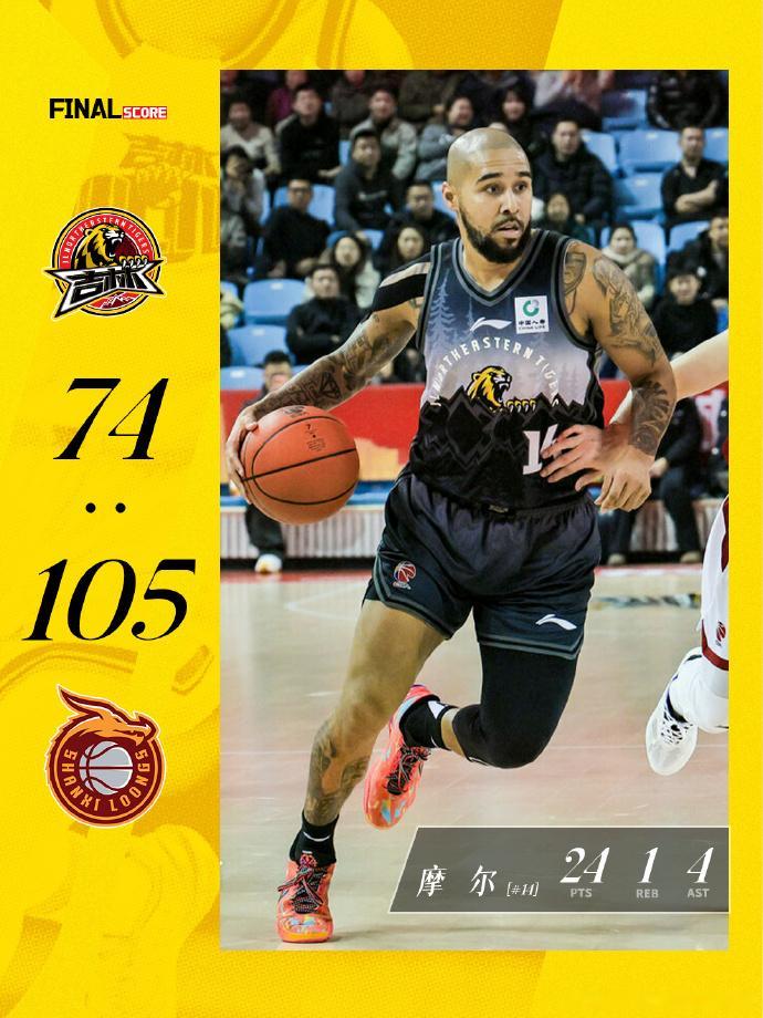 虎扑01月31日讯今日CBA常规赛,吉林男篮74-105负于山西。